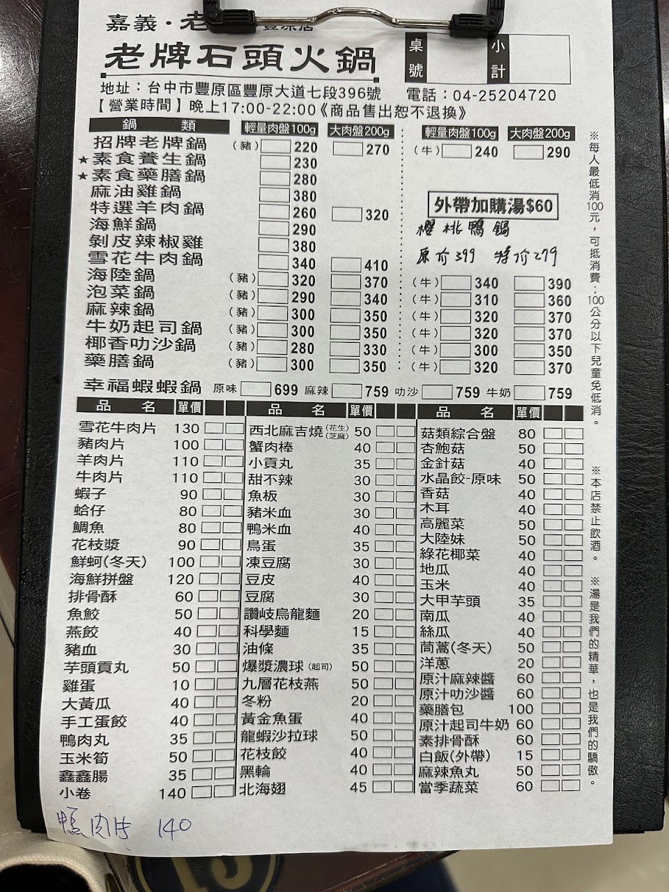 2024最新在地推薦餐廳的菜單_嘉義老牌石頭火鍋 (台中豐原店)【豐原火鍋|附近美食|火鍋餐廳|推薦鍋物|晚餐推薦】的菜單、圖片