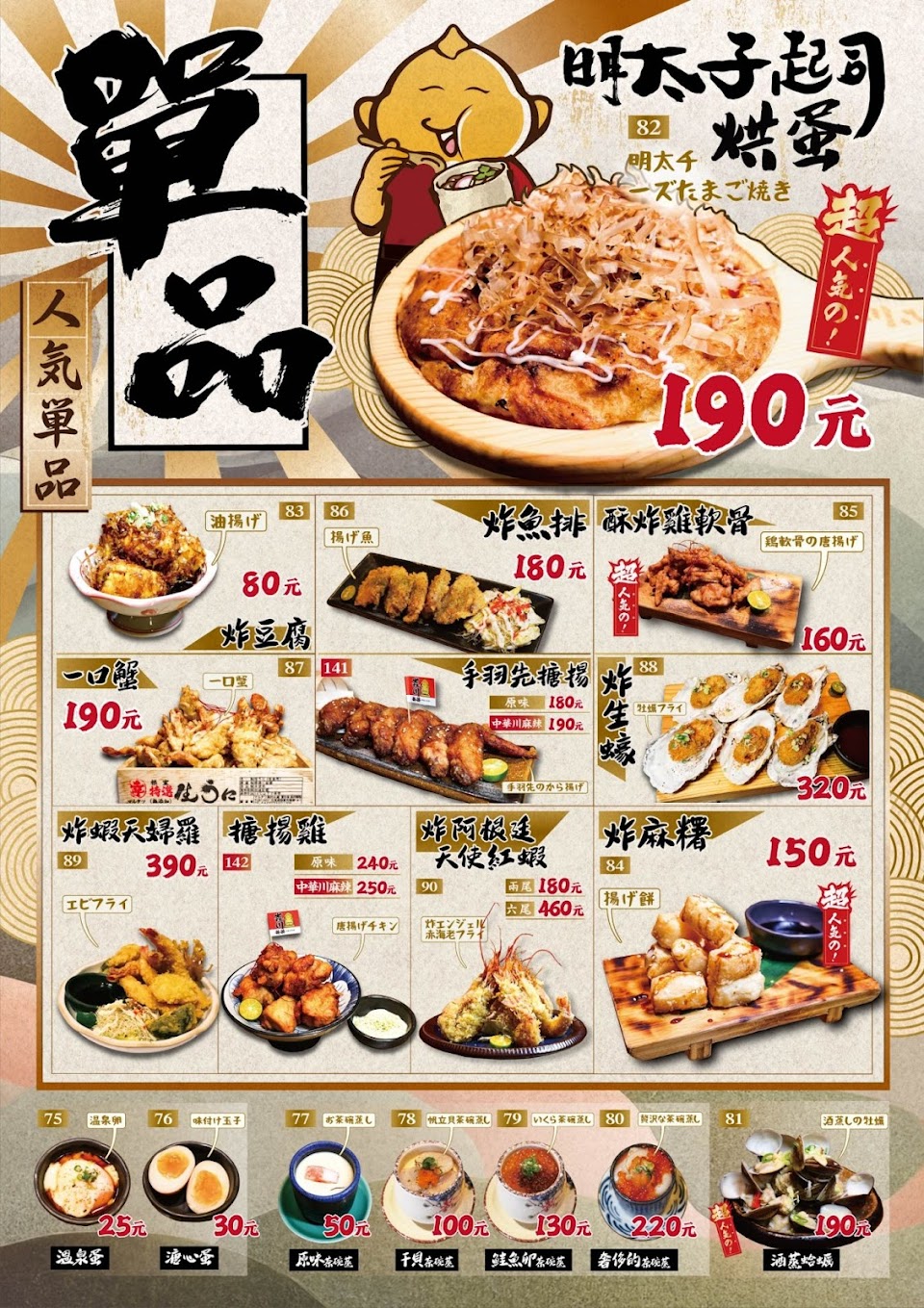 餐點種類多樣,生食熟食丼飯,有三種加價套餐能做選擇,單點品項也相當多樣…
