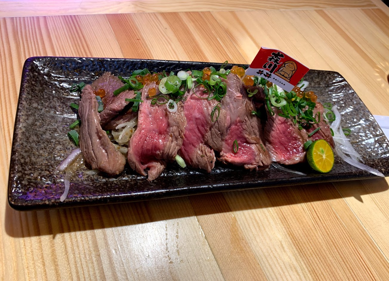 海膽骰子牛肉丼飯,海膽新鮮海味夠,骰子牛肉肉質稍微過韌,個人覺得需要再切小塊點,口感才會比較好,但整體還是蠻值得推薦。