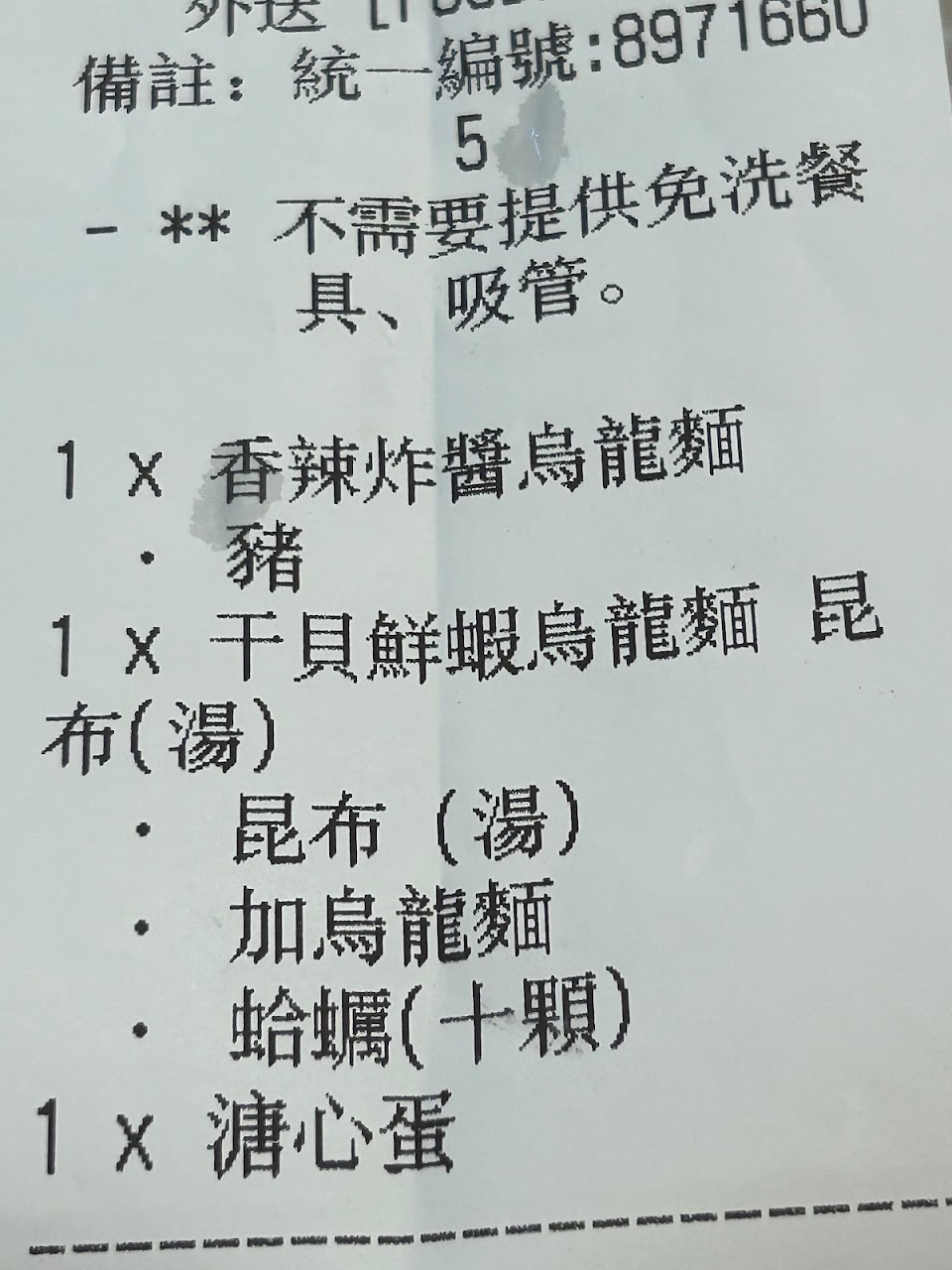 烏龍麵很Q 料不算豐富 湯偏鹹 服務 外帶 餐點類型 晚餐 平均每人消費金額 $1-200