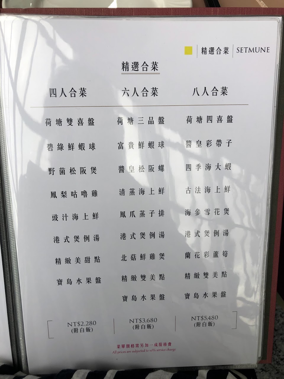 合菜4000元,7菜一湯一甜品,每一道菜量足很大盤,味道都不錯,很有大菜感,甜湯的料少比較可惜一點點,餐廳佈置優雅舒服,上菜速度剛好,冷氣滿強,包廂裡一邊用餐一邊放音樂很不錯。