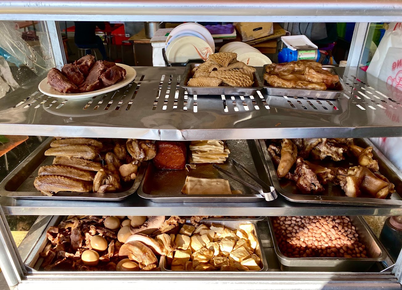 人聲鼎沸,排場不小。但麵條煮太爛,燙青菜也是如此。滷味不入味,無標價以醬油膏調味,感覺踩到”地雷”。