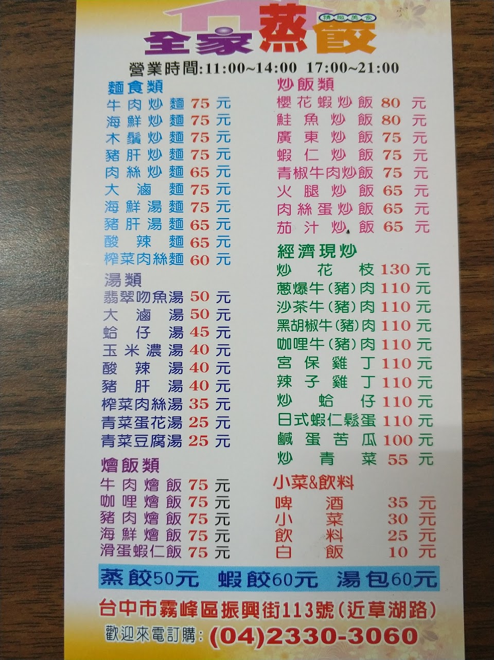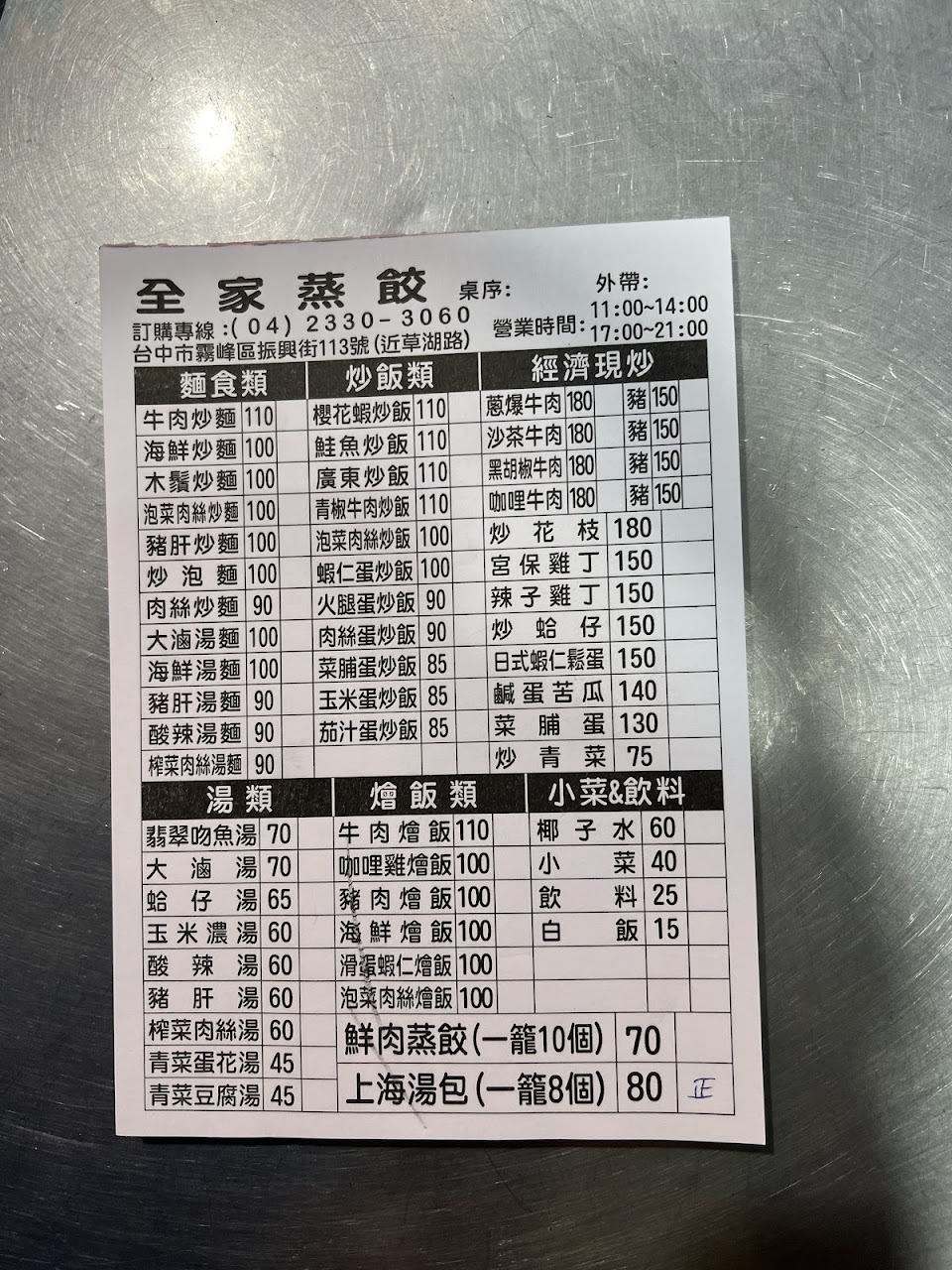 2024最新在地推薦餐廳的菜單_全家蒸餃的菜單、圖片