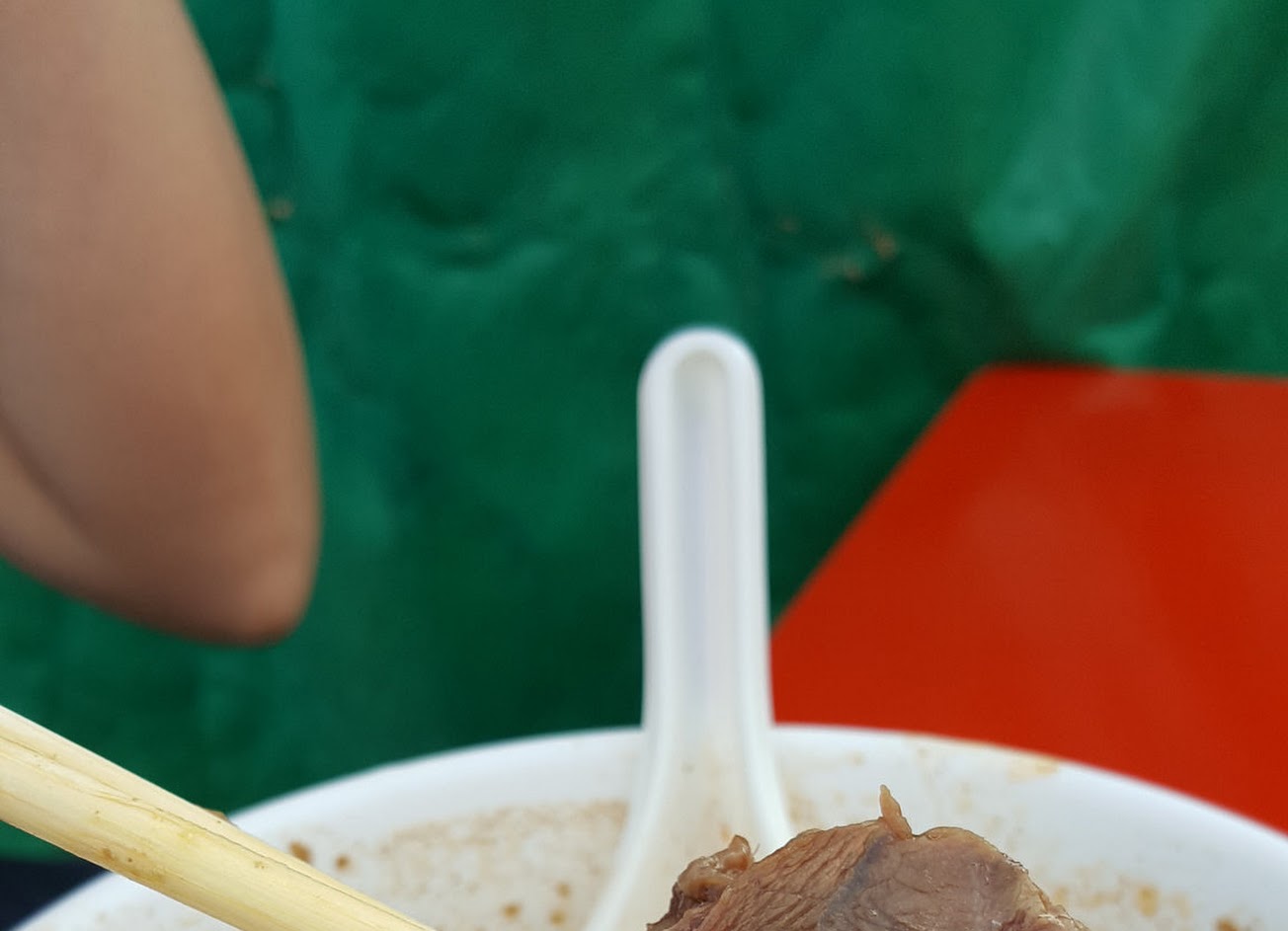 牛肉麵麵條還算有嚼勁,只是在太陽下吃麵比較不OK,不介意可以來吃看看。