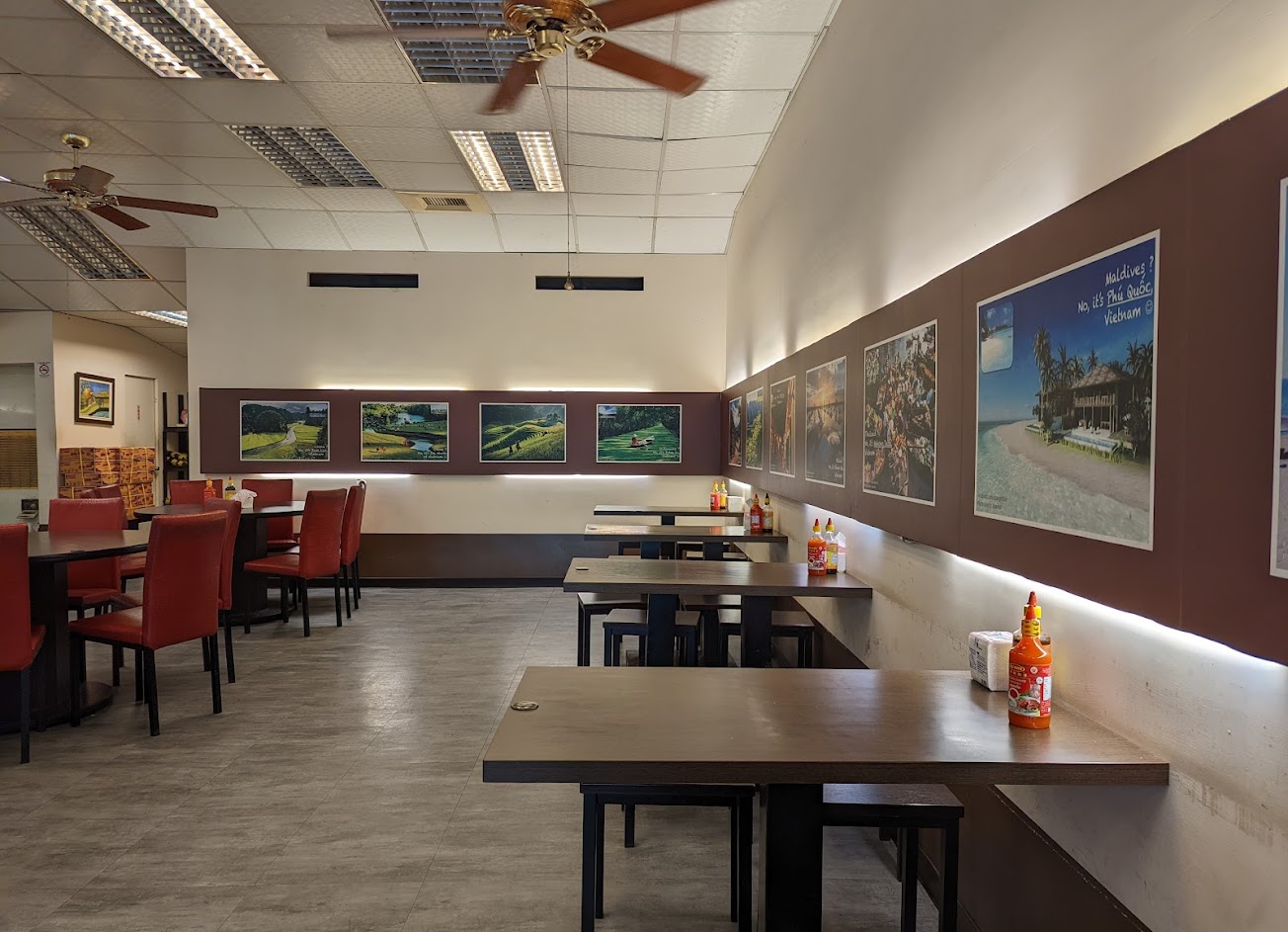 位於霧峰最熱鬧的地帶,若用餐尖峰時間停車需碰運氣,如果找不到路邊停車,在靠近林家宮保第一側有一些付費停車場,步行至此店約5分鐘。 店面寬敞明亮,整潔度尚可,菜式選擇多樣,價格平實、餐點份量充足。 牛肉湯米線:湯頭一般般,與台中其他越南料理店相比無特別之處,但清澈且吃完不會口渴,肉片柔軟、熟度控制得恰恰好。 排骨湯米線:少數見到直接將炸排骨放至湯裡的作法,另加上一煎蛋為湯頭增添油脂香氣,並添加番茄增色及收斂油膩感。 生春捲:尺寸頗大,但內餡以米線的比例偏高,蝦、肉、菜則不多。