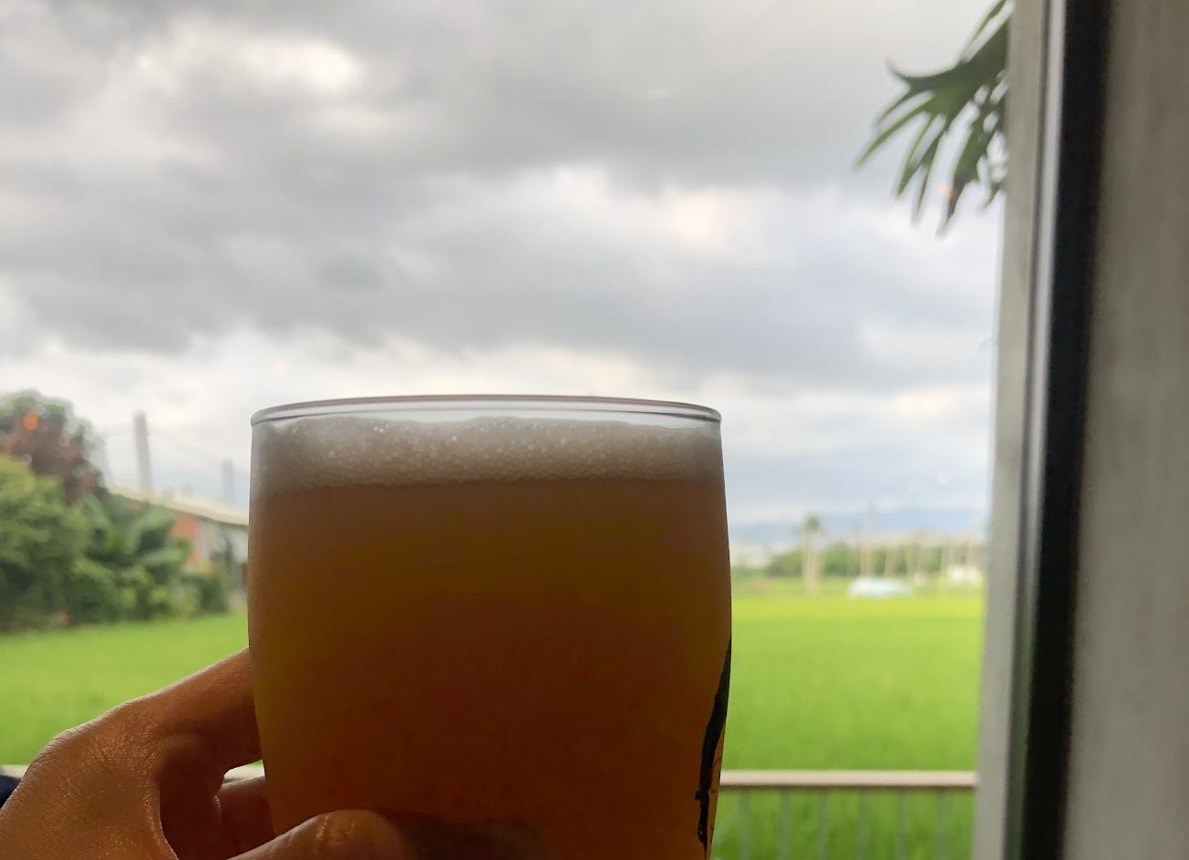 旁邊就是療癒的稻田美景,吃飽配啤酒望著稻田放空 超chill~