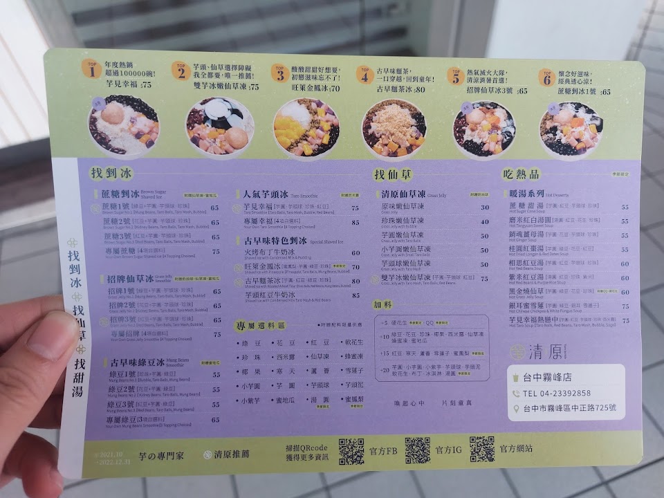 2024最新在地推薦餐廳的菜單_清原芋圓 霧峰中正店的菜單、圖片