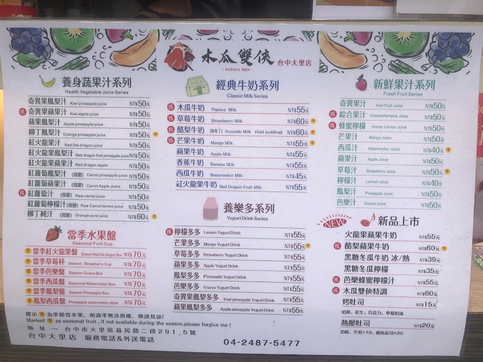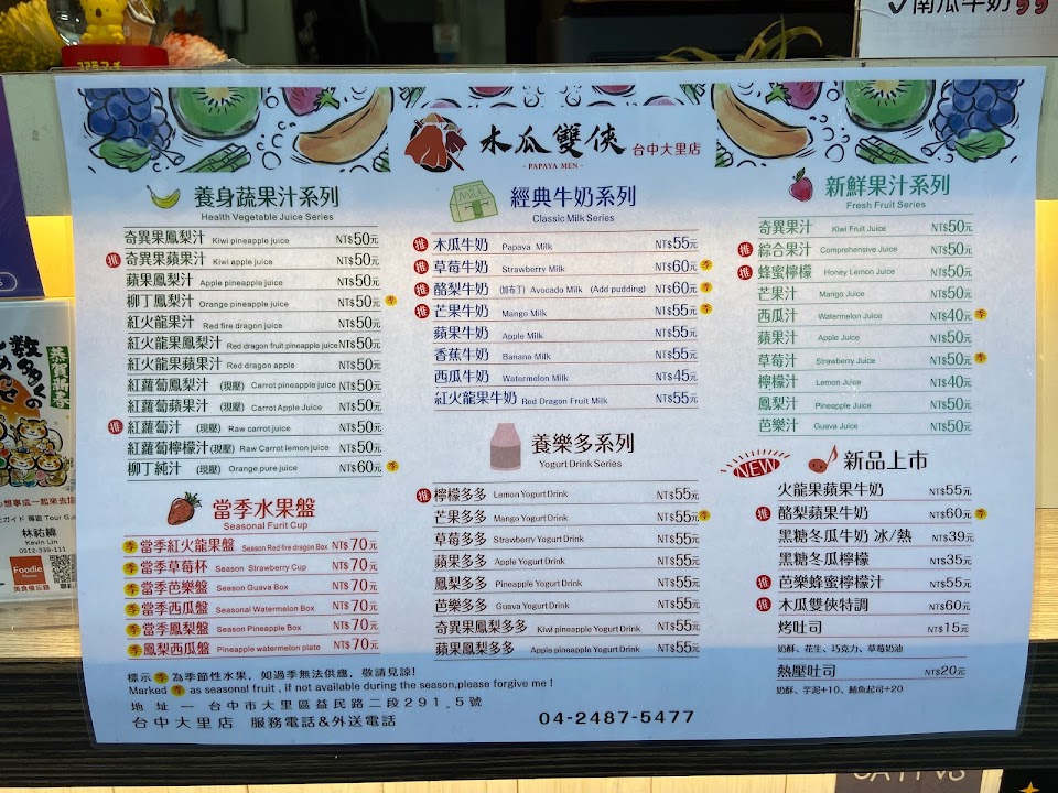2024最新在地推薦餐廳的菜單_木瓜雙俠-台中霧峰店的菜單、圖片
