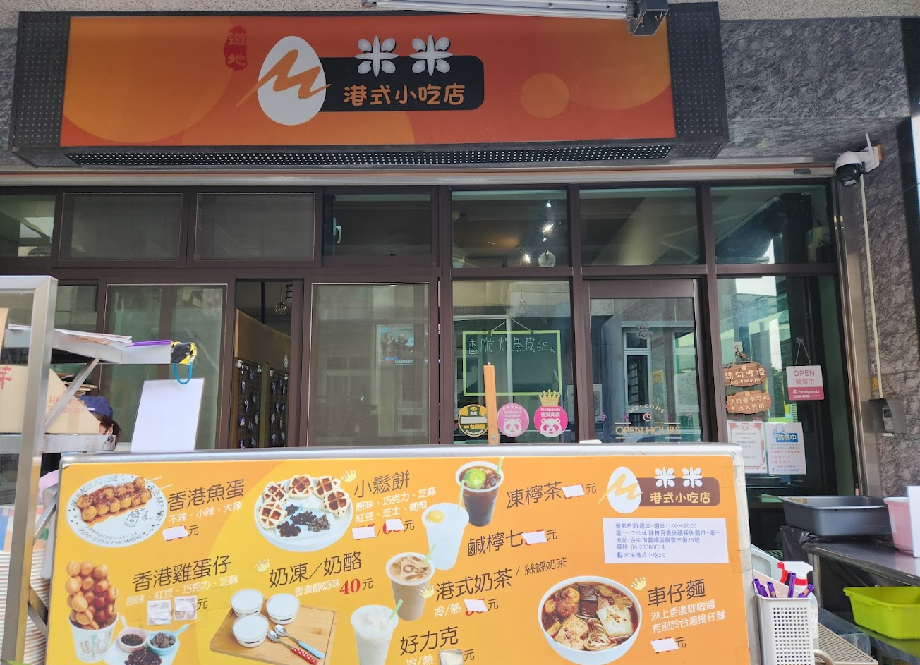 想吃道地的港式料理可以來試試看米米! 當天點了:車仔麵、咖哩五寶、叉燒、凍檸茶、港式奶茶、雞蛋仔 咖哩五寶 (魚蛋不是一般桂*火鍋料常見的那款,個人覺得非常好吃!大推他們家的魚蛋! 牛肚、蘿蔔熬的很軟且入味 推薦! 魷魚腳對我來說偏硬了。) 叉燒 (甜而不膩調味不錯,小可惜是瘦肉部分偏多) 凍檸茶 (是真的凍檸茶不是使用某牌檸檬紅茶假冒,喜歡喝清爽飲品的人大推點它) 港式奶茶 (不會死甜,茶香很濃!確實是用煉乳沖泡,很道地喔) 雞蛋仔 (現烤!外酥里嫩,雞蛋香氣十足) 車仔麵 (麵條Q彈煮的軟硬適中,可惜麵湯的部分有點膩口,清湯會好一點!) 整體表現滿意,願意回訪! 服務 外帶 餐點類型 晚餐