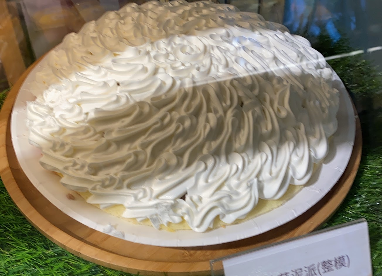 外表看起來表面彷彿很多奶油,但實際吃起來時其實佔的比例不高,中間的芋泥非常的紮實,而且口感非常接近天然食材,甚至放心的挖了一點給小嬰兒嚐看看,派的下方搭配的不是硬的餅皮而是類似蛋糕的作法,可以很輕易的切開不會造成一堆碎屑。