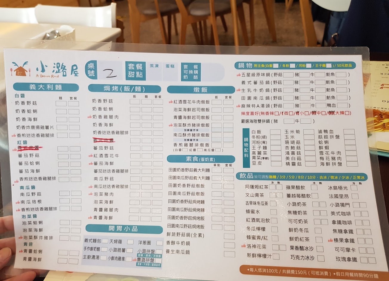 菜單有義大利麵、燉飯、焗烤、火鍋和小食;店家非常貼心且親子友善,除了準備繪本、餐椅、兒童餐具之外,還主動設想孩子用餐喜好,套餐濃湯特意沒加胡椒粉。餐點用料實在,口味好吃,無論是配菜、主餐都很值得推薦。