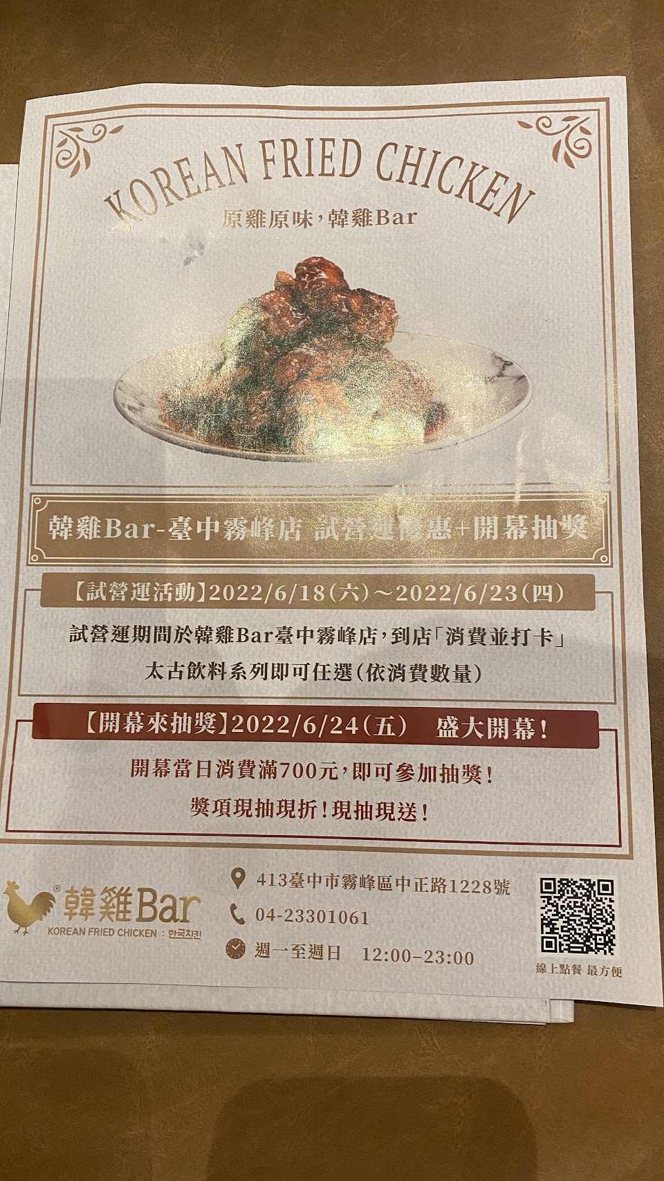 2024最新在地推薦餐廳的菜單_韓雞Bar-台中霧峰店(正統韓式炸雞)的菜單、圖片