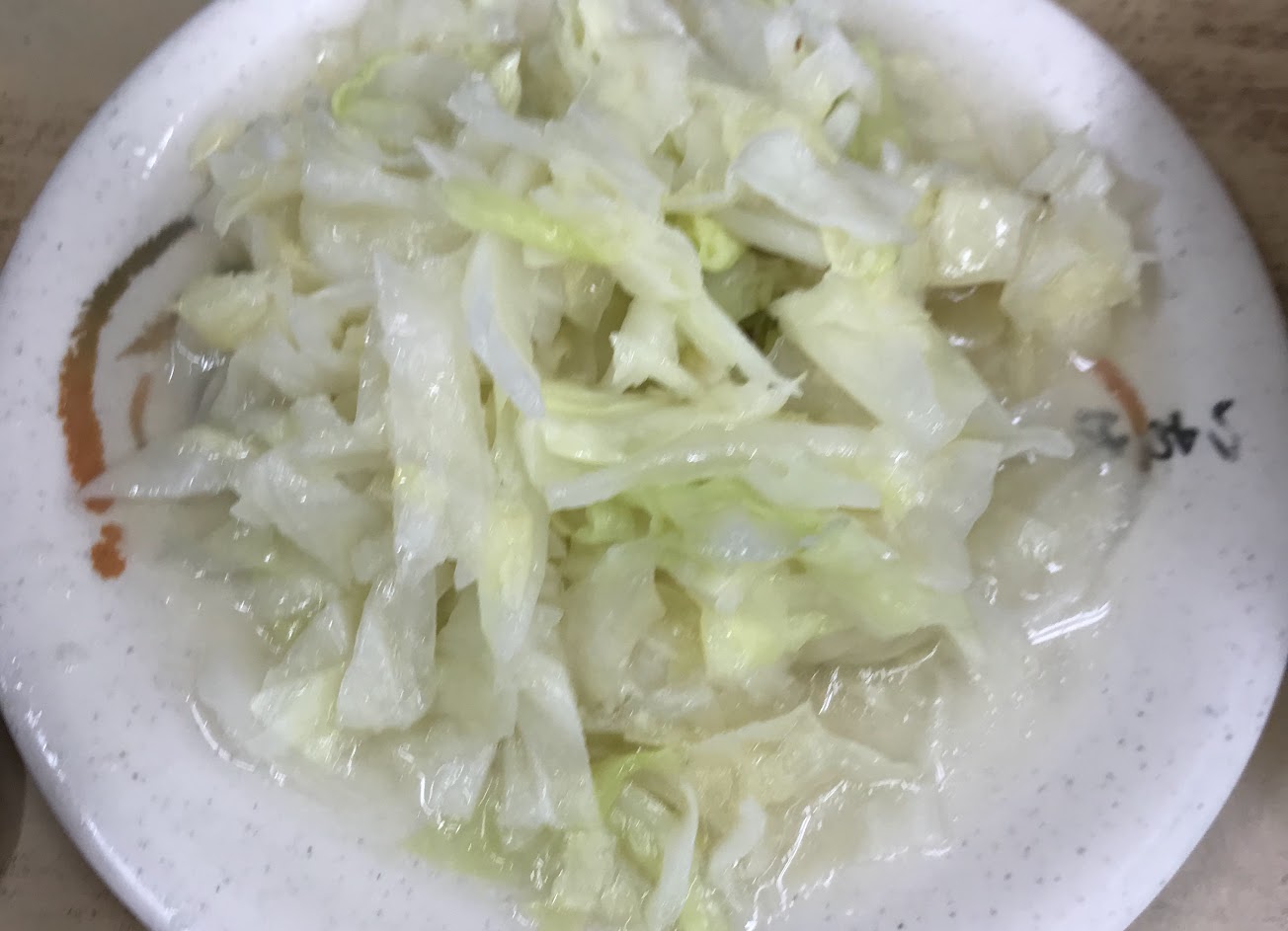燙高麗菜切得較小但吃起來像炒過一樣好吃。