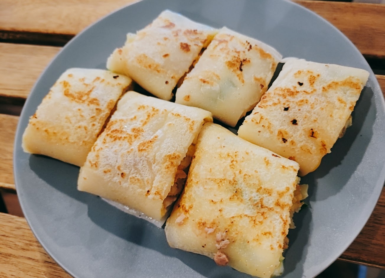 部分煎煮處酥脆,整體口感屬Q彈軟嫩,具厚度的古早味粉漿餅皮是外食早餐少見的選擇。口味偏淡推薦佐醬料。