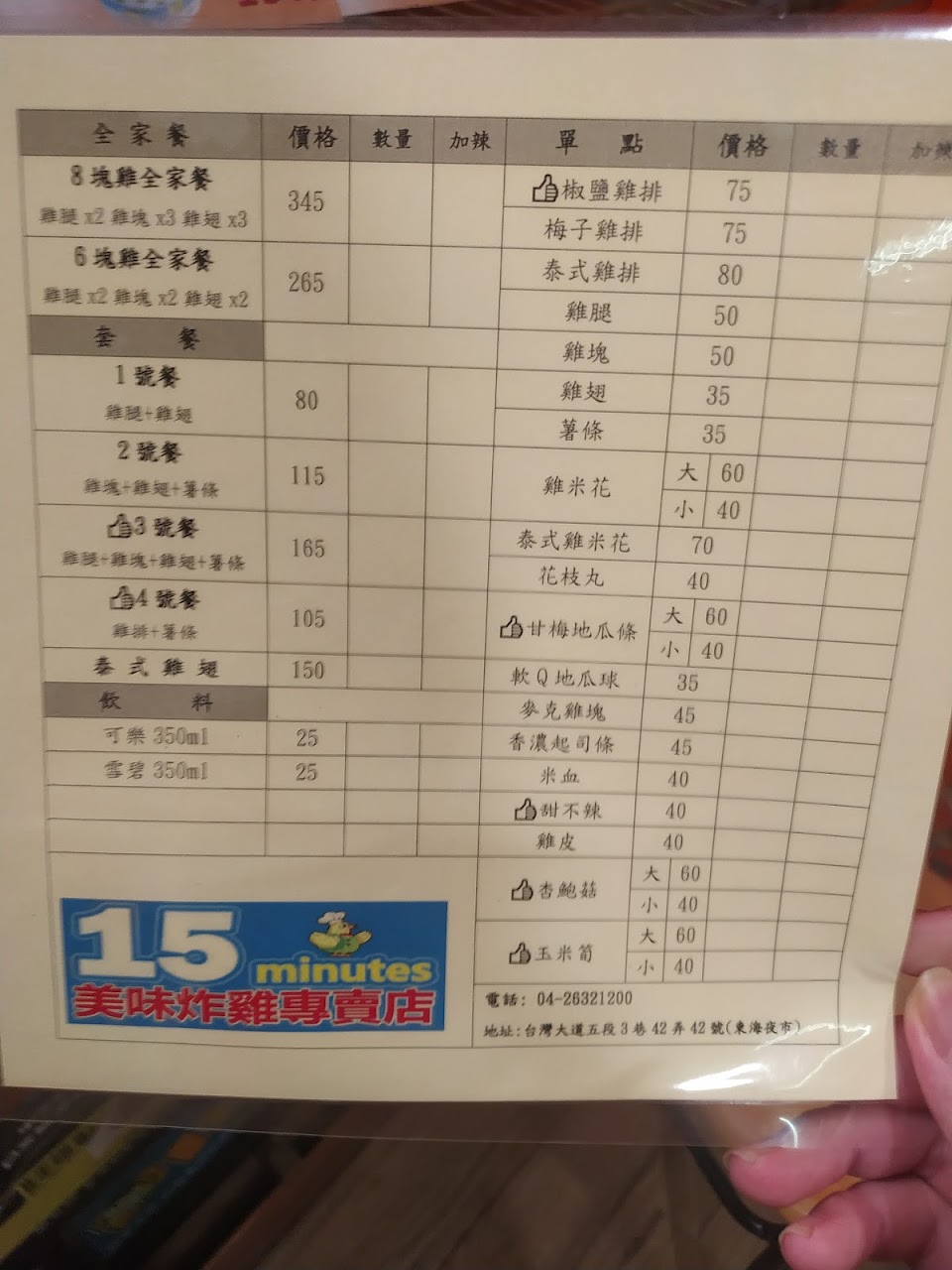 炸雞皮脆肉汁多,比市面上連鎖店好吃,價格也很親切,六塊炸雞199,現場裹粉炸需耐心等待。全家餐系列自備容器折5元,是環保友善餐廳。