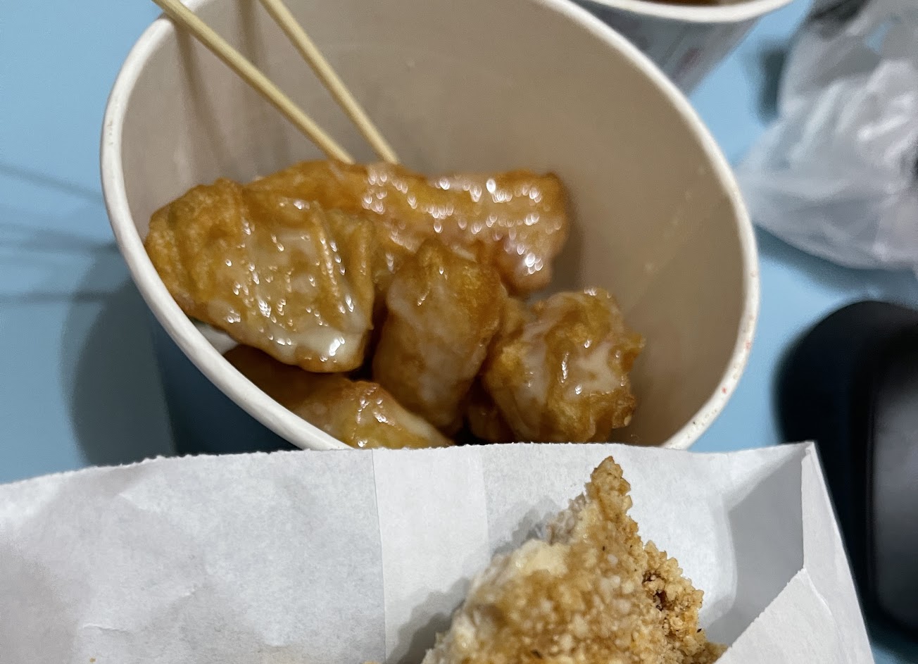 炸物都很好吃 ?雞排有醬還特別套了兩層 還附了濕紙巾好貼心