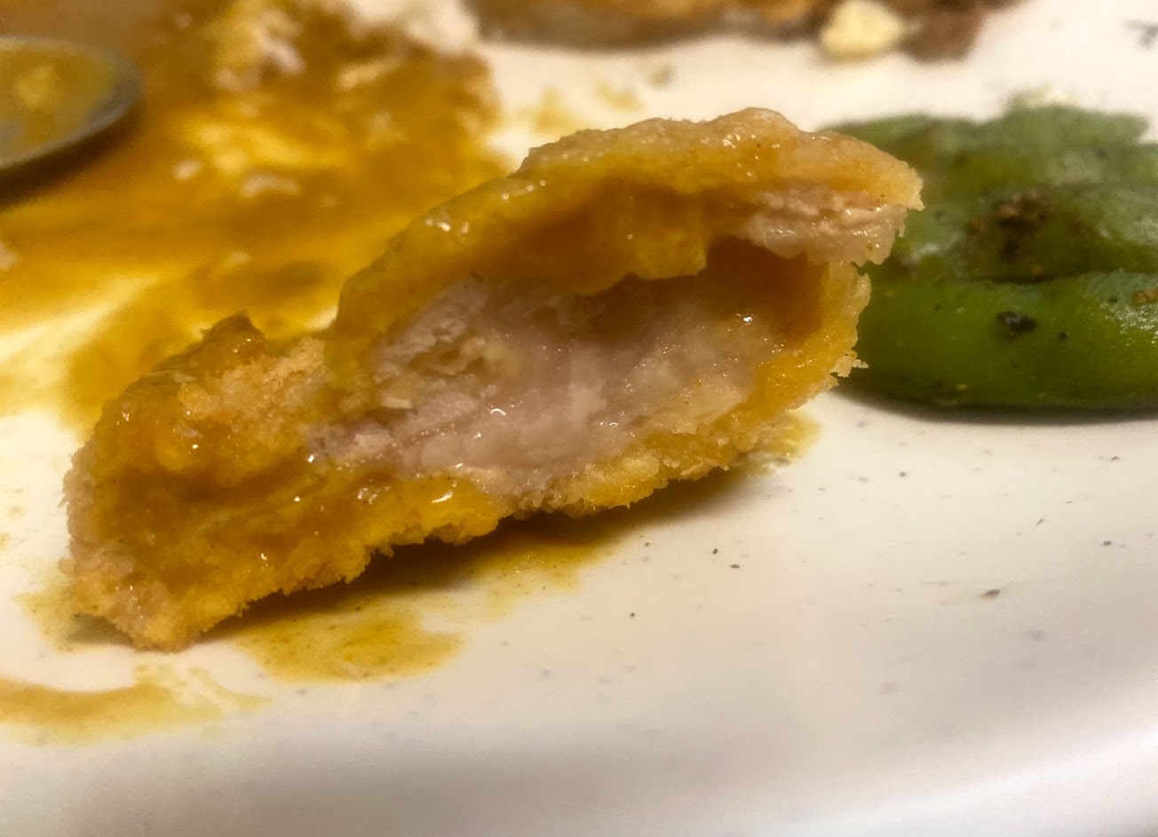 豬排部分沒有煮熟(整塊都有熟,這邊比較厚沒熟),結果外場人員拿去問廚房說是筋的部分…….然後就把肉收走,根本沒做任何處理。肉越來越薄就算了還沒煮熟,真的不推。