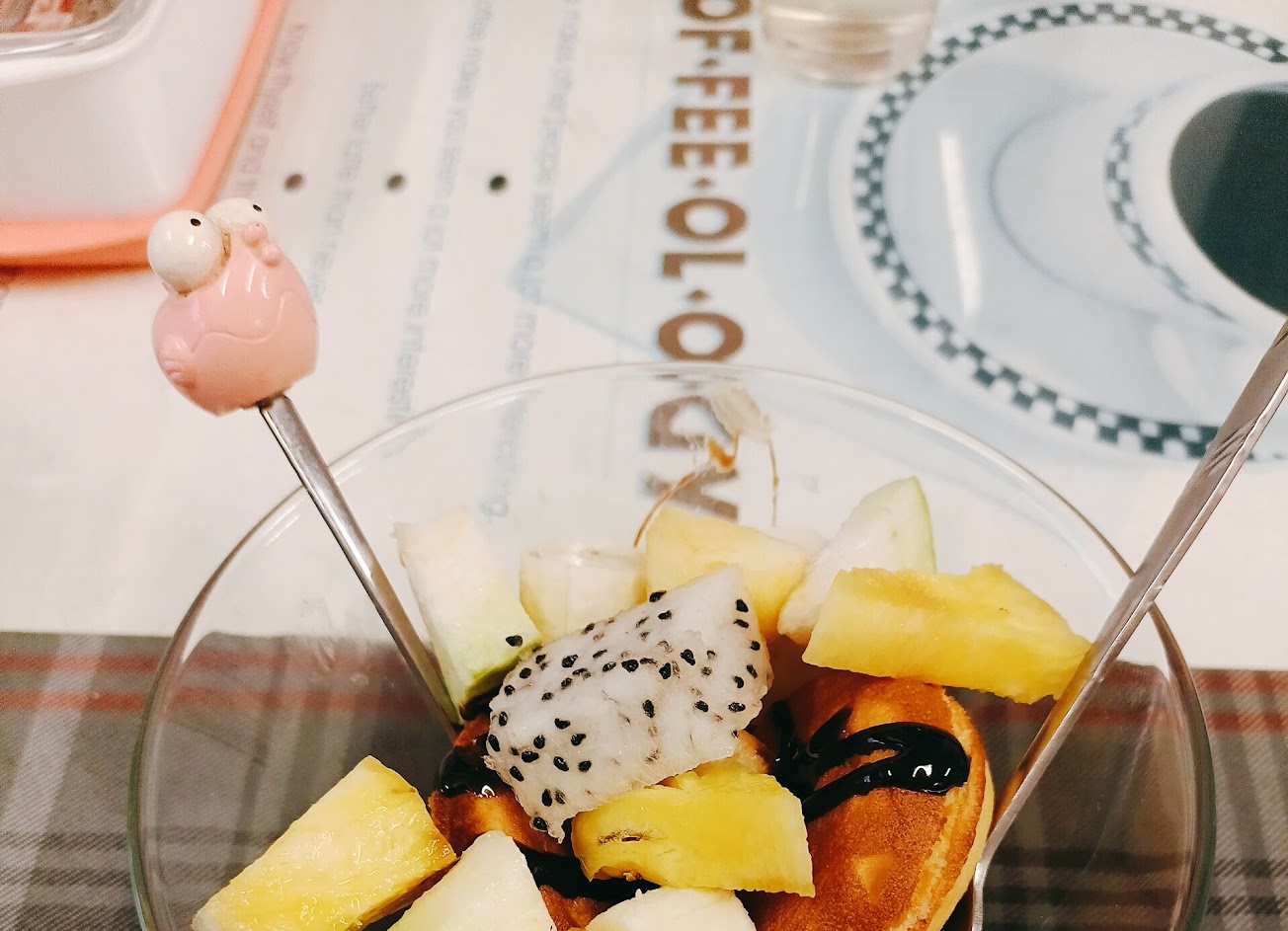 水果有香蕉蘋果芭樂跟鳳梨切塊,鬆餅因為幾乎隨主餐上所以比較沒那麼熱,但還是很蓬鬆紮實