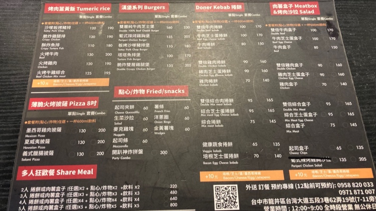 吃很久的老店家了,很好吃,推薦雙人餐,可以換肉薯盒子配卷餅,炸物選雞塊可以請老闆調雞塊醬(黃芥末+泰式醬),捲餅也可以混兩種醬,推薦白醬+BBQ,食量比較大也可以再多點漢堡,牛肉或雞肉口味的都很棒