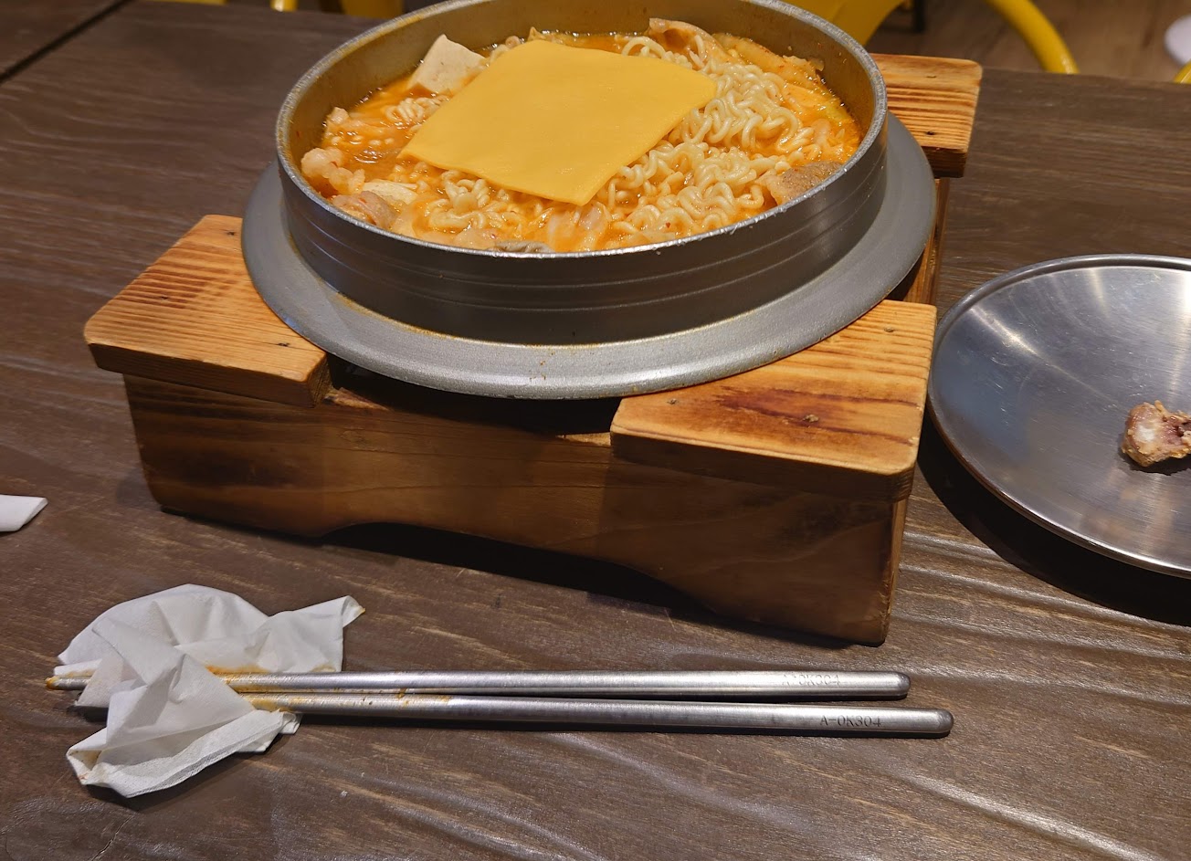 石鍋拌飯、年糕跟韓式炸雞都很好吃,口味偏鹹,但是是會想二訪的店,現在沒有餅乾沒有冰淇淋,有點失望,希望下次來會有