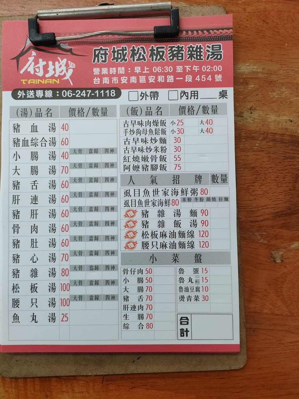 2024最新在地推薦餐廳的菜單_府城松板豬雜湯的菜單、圖片
