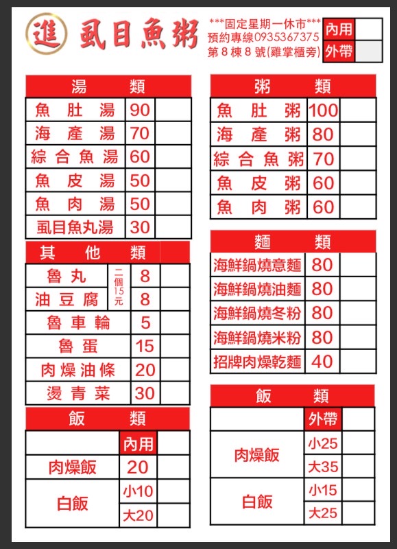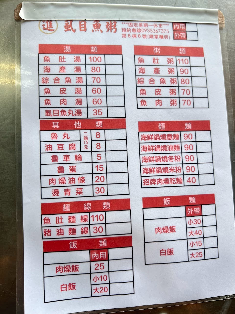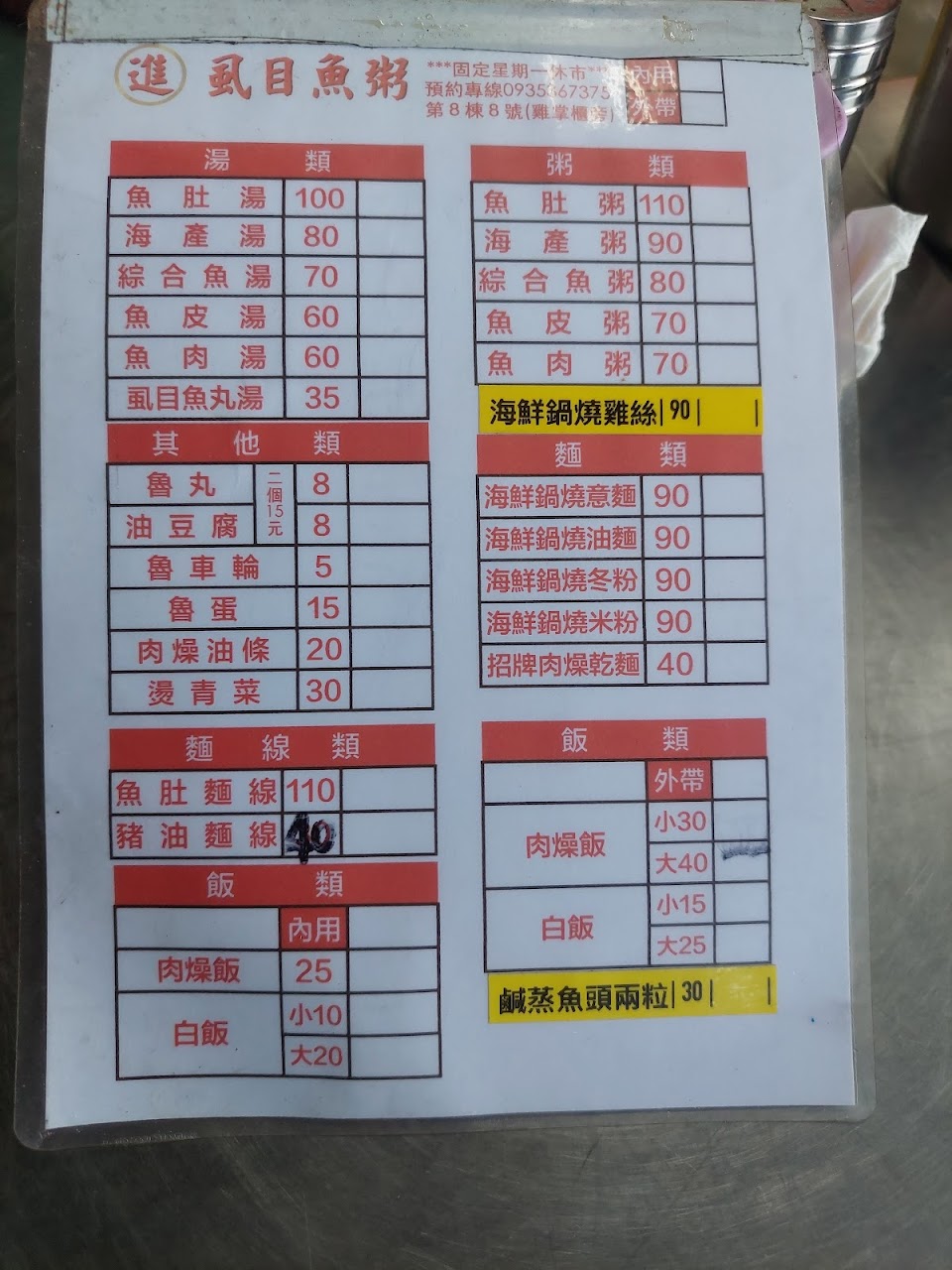 2024最新在地推薦餐廳的菜單_進-虱目魚粥的菜單、圖片
