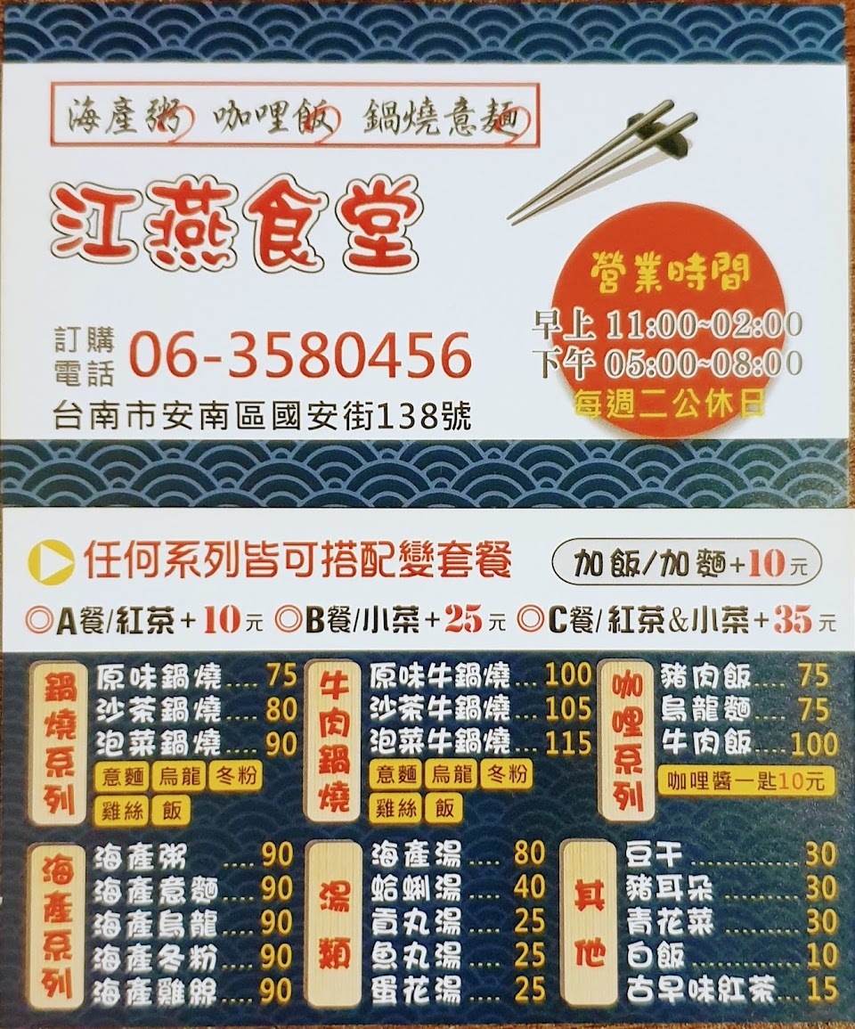 2024最新在地推薦餐廳的菜單_江燕食堂的菜單、圖片