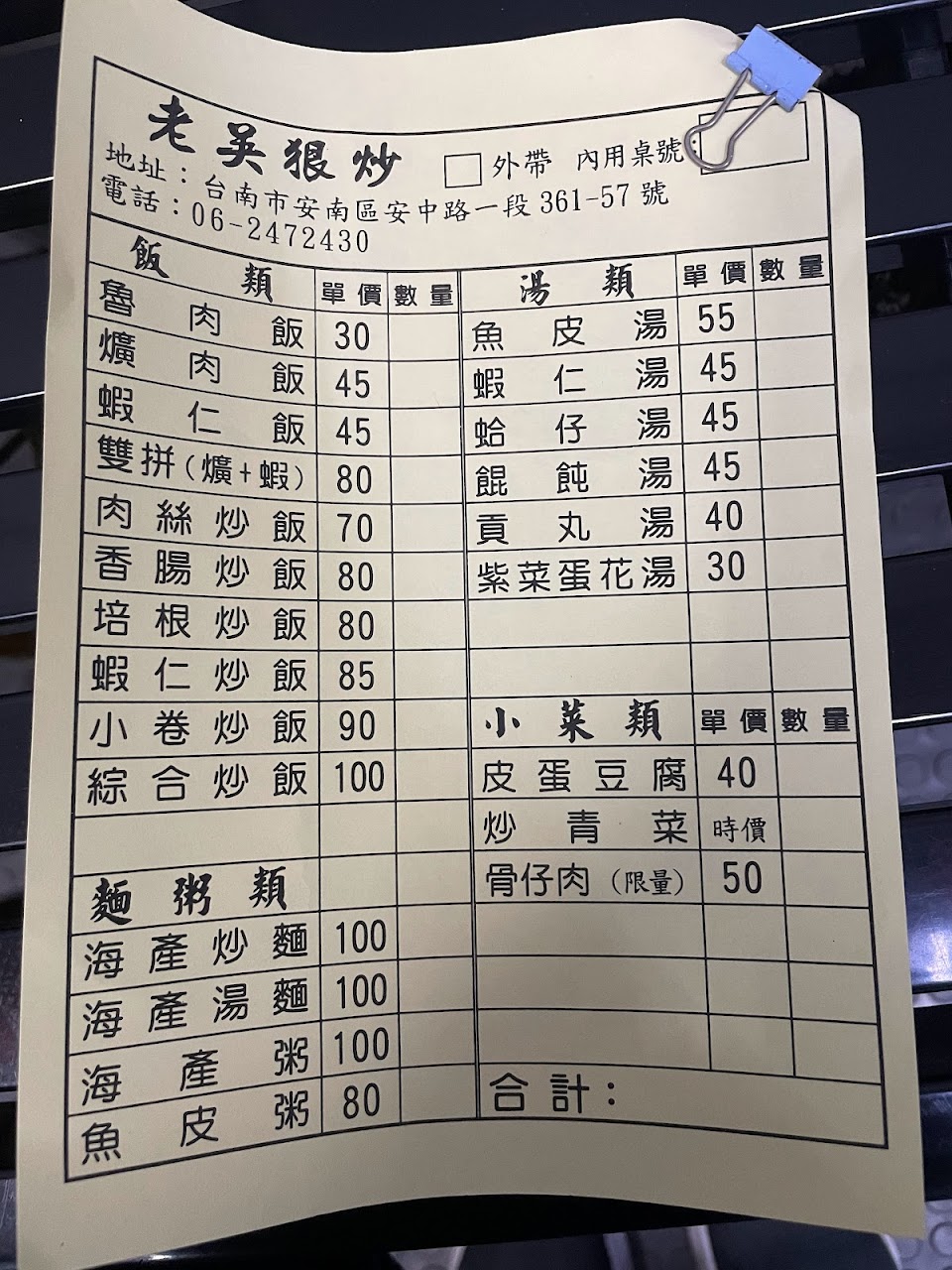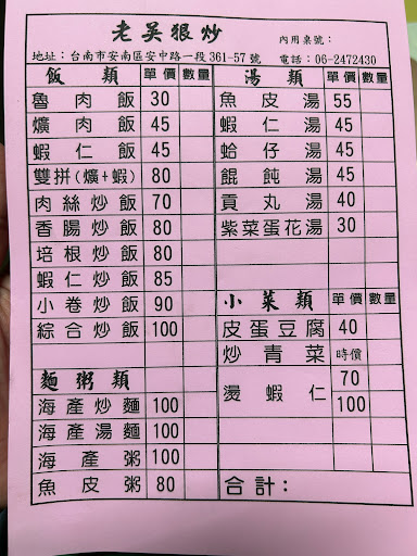 2024最新在地推薦餐廳的菜單_老吳狠炒 海產麵(粥)的菜單、圖片