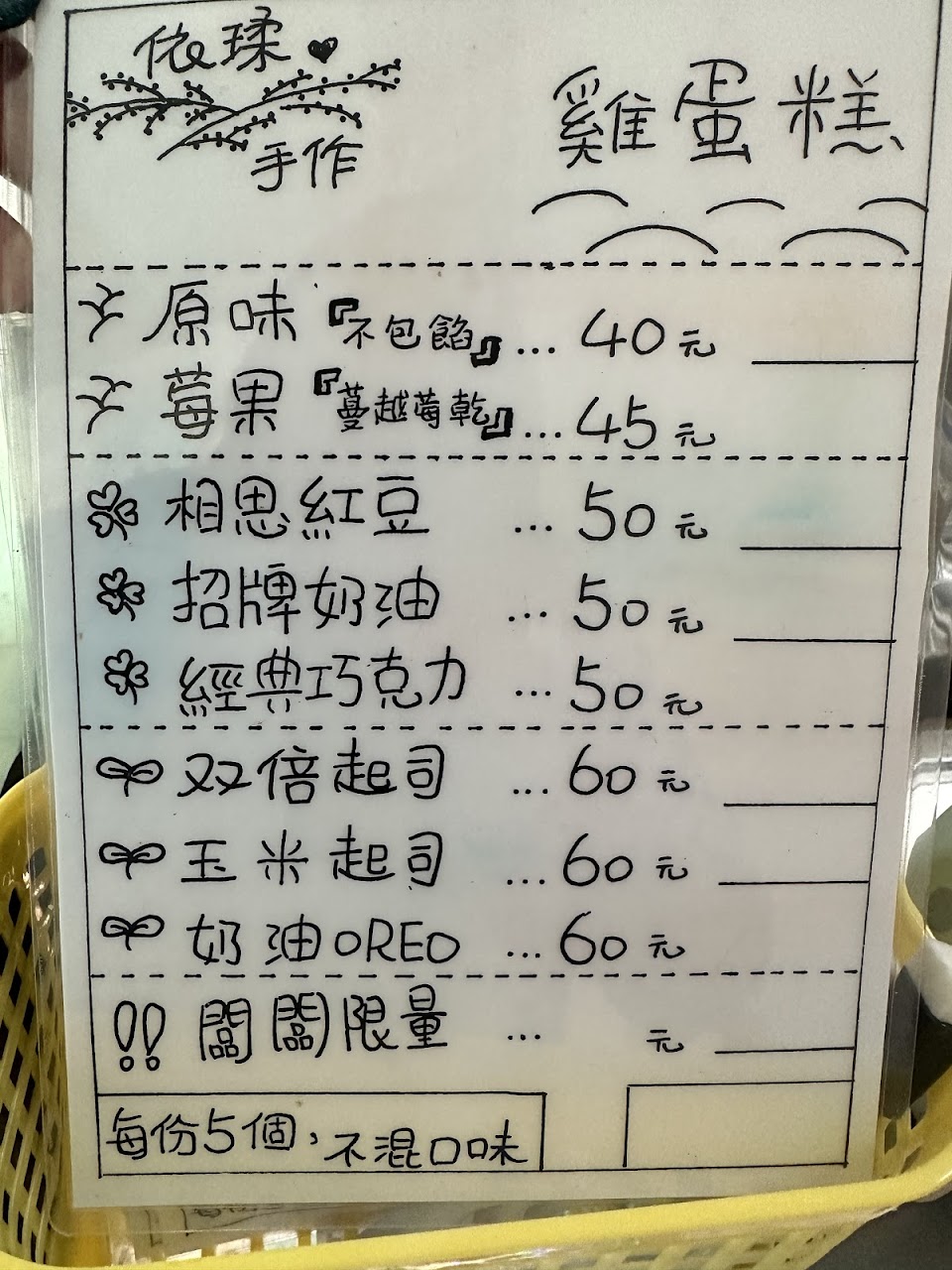 2024最新在地推薦餐廳的菜單_依瑈手作雞蛋糕的菜單、圖片
