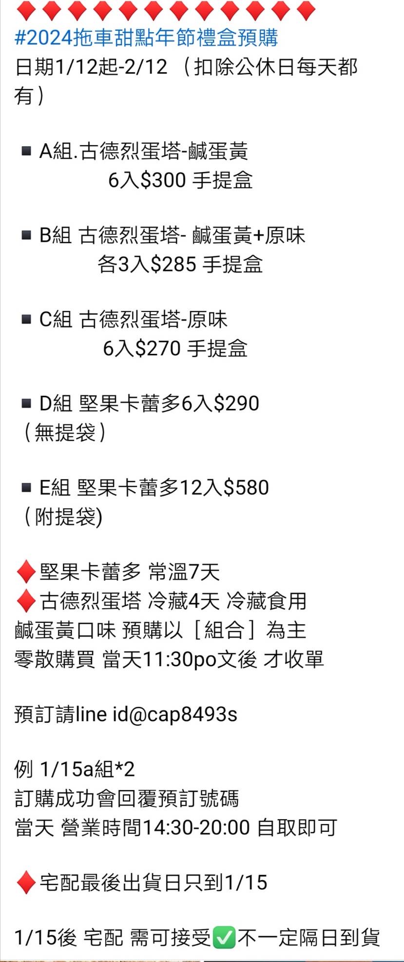 每日甜點新鮮現做,項目都不同 用line預定很方便~每次訂完去現場,都會忍不住看著櫥窗又買下去~ 最喜歡巧克力塔