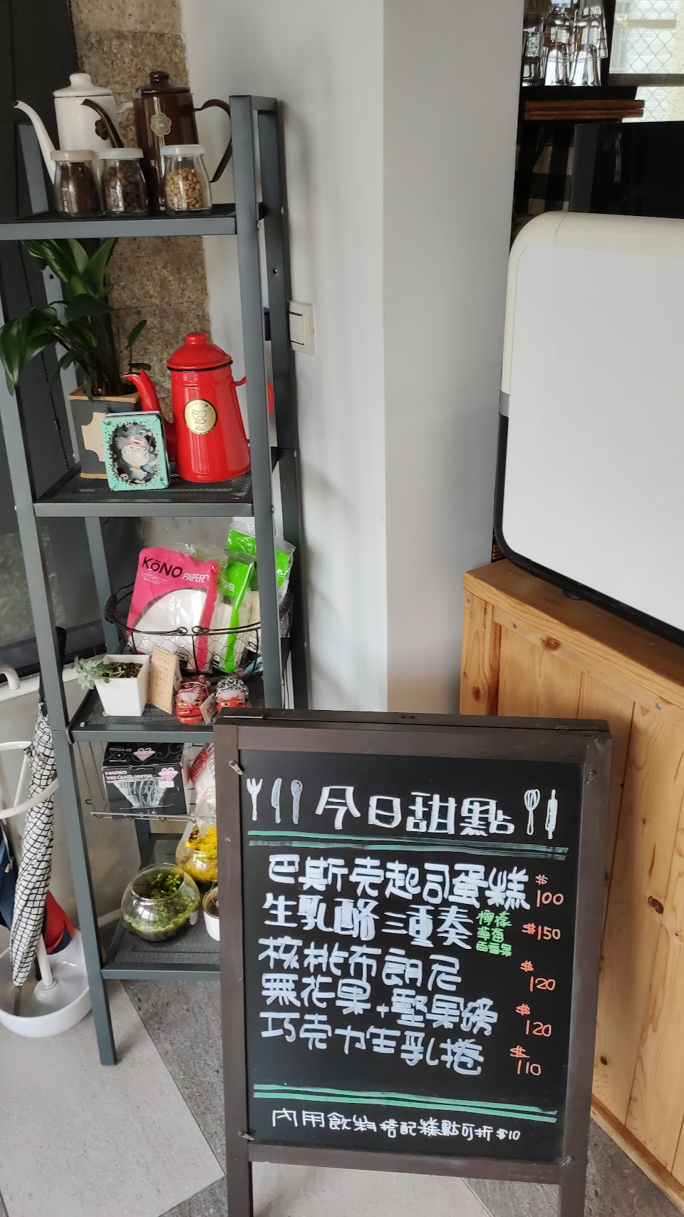 店裡販售咖啡、茶飲、自製的麵包、蛋糕、還有我最喜歡的家常菜、這次吃了控肉飯、非常的入味、軟嫩不乾柴、套餐一個主菜一碗飯一碗湯、四樣配菜、一杯飲品!有時候不想煮飯又想吃點家常味來這就對了!