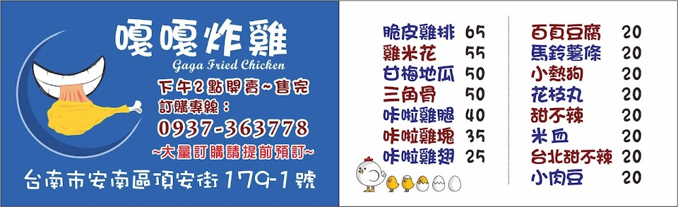 2024最新在地推薦餐廳的菜單_嘎嘎炸雞/台南安南區炸雞/台南安南區美食/台南安南區小吃/台南安南區宵夜/台南安南區外送/台南安南區必吃的菜單、圖片