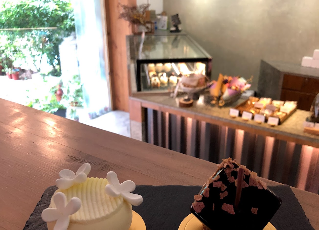 門外綠意盎然、門後有夢幻法式甜點,甜點的外觀精緻、口感有層次不死甜。店內雖小,但裝潢簡潔不會有壓迫感,是有質感的甜點店。