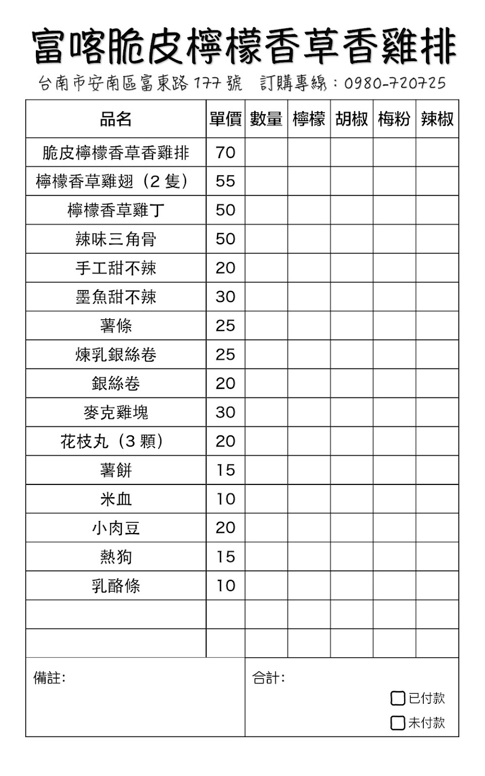 2024最新在地推薦餐廳的菜單_富喀檸檬香草香雞排(海佃富東店)的菜單、圖片