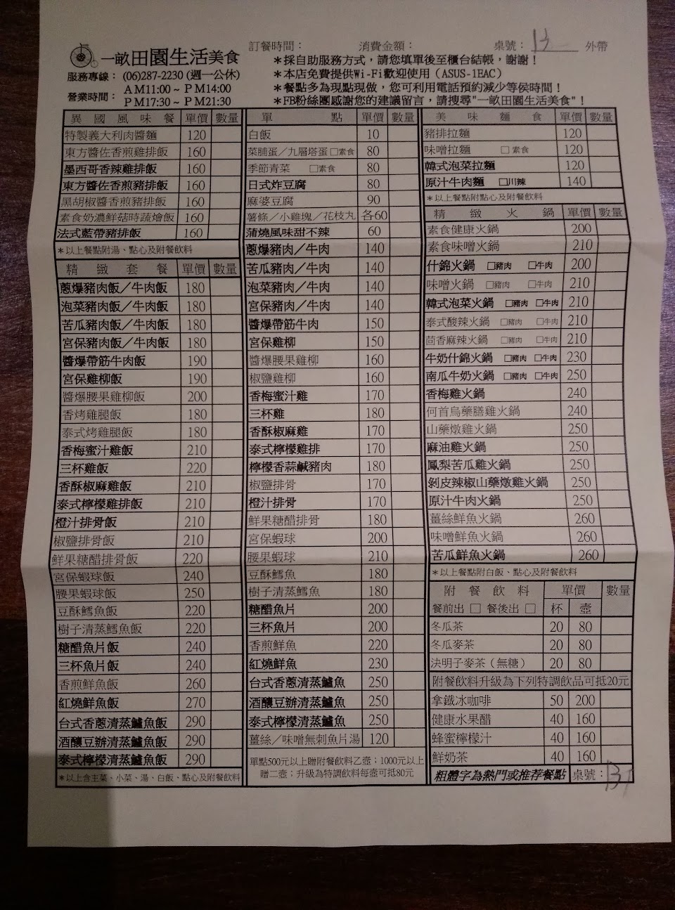 用餐先自行入座,桌上有點餐單,選好餐後,註明桌號至櫃檯結帳即可。