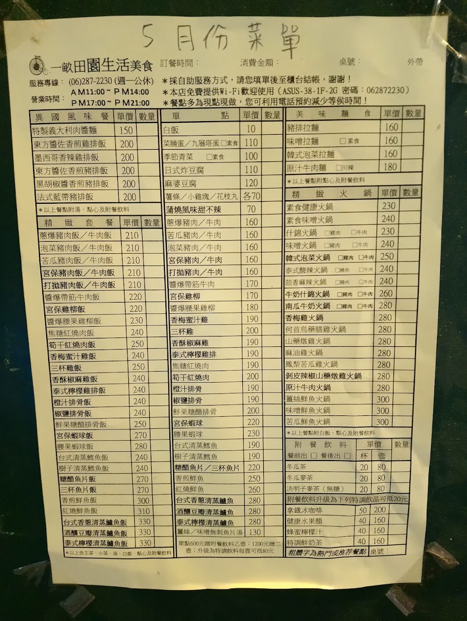 2024最新在地推薦餐廳的菜單_一畝田園生活美食的菜單、圖片