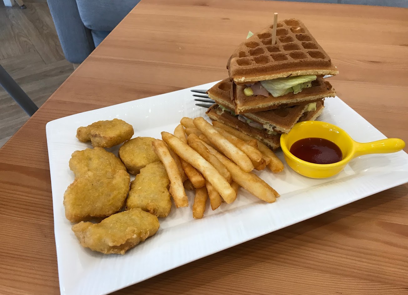 飲料跟鬆餅都很好吃,綜合炸物也都真材實料,老板態度很親切,也能主動幫我們搭配飲料折扣省荷包很貼心,店內乾淨播放的音樂也讓每天工作煩悶的心情在這午茶時光得到放鬆,疫情後有這樣能內用的店家大推? …