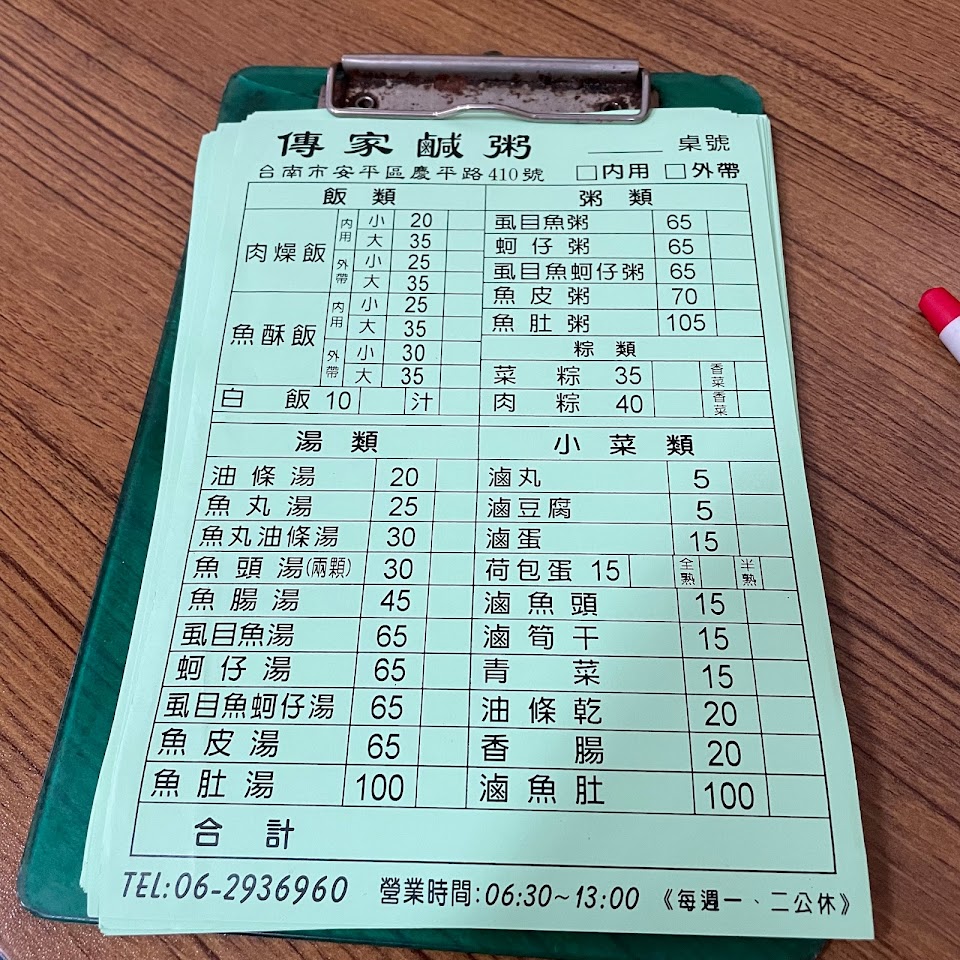 2024最新在地推薦餐廳的菜單_傳家鹹粥的菜單、圖片