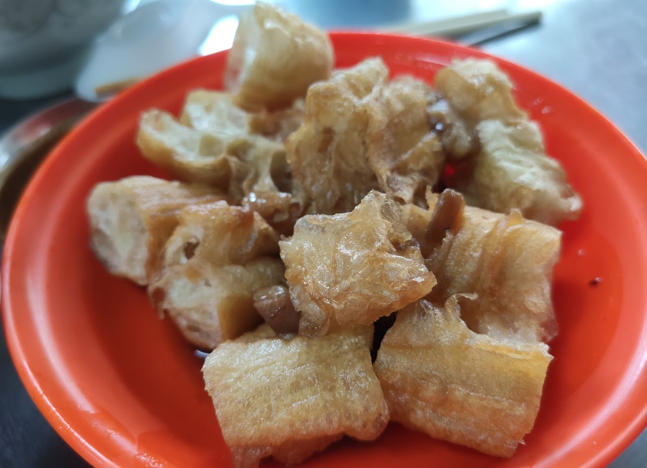 認真說這種食物每家都大同小異,外地人沒必要挑名店排隊,我是平日早上還沒八點來,客人還沒員工多,結果已經在偷備餐,我的煎魚腸是冷的還明顯乾掉…嘔嘔嘔!