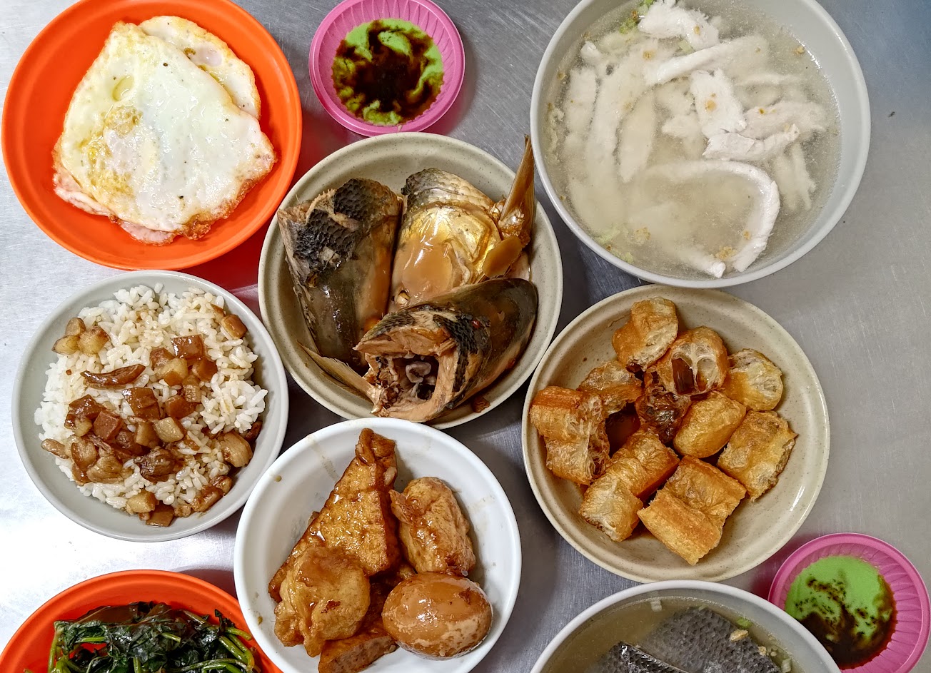 小菜選擇很多,我們點了筍乾、茄子和高麗菜和菜脯蛋都不錯,但高麗菜送來是滷白菜;香酥魚肉粥和魚肉粥份量剛好,以女生的食量是吃得完的,魚肉也很嫩;湯的部分點了魚肚湯和魚肉湯,魚肚湯的湯頭最好喝、很順口,但魚肚較腥吃到後面偏膩,魚肉湯的湯頭有油蔥酥味,喝起來很像一般店家貢丸湯的味道,但魚肉也很嫩可以全部吃完也不會膩;肉燥飯的肥肉偏多,但搭上醬汁很下飯,整體上很不錯,是一家來台南值得一試的小吃店??
