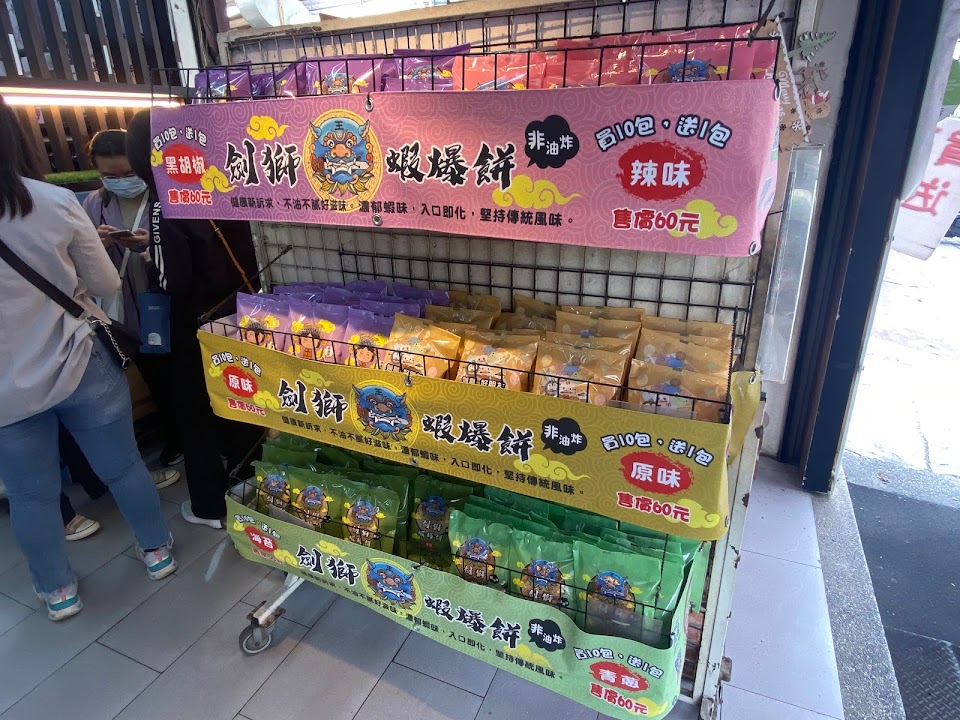 有分油炸跟非油炸的蝦餅,且口味多樣化有提供試吃,能讓客人在試吃完後選擇自己喜歡的口味。