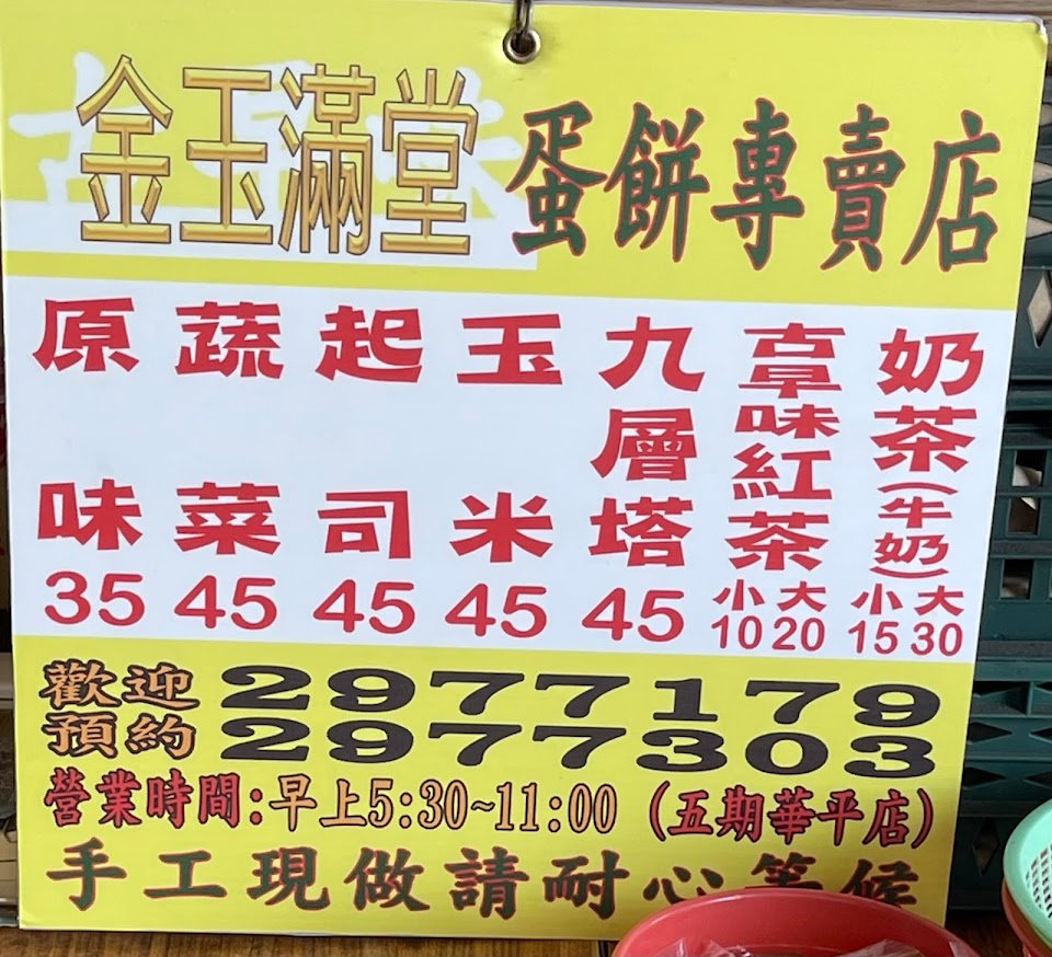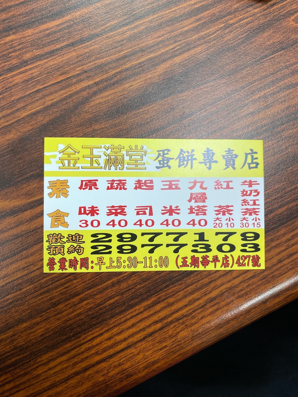 2024最新在地推薦餐廳的菜單_金玉滿堂蛋餅專賣店(五期華平店)的菜單、圖片