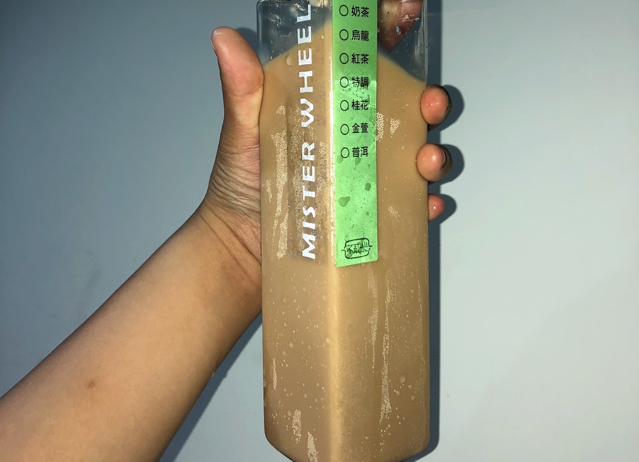 「老闆娘說這個奶茶要握瓶身不要握瓶蓋」