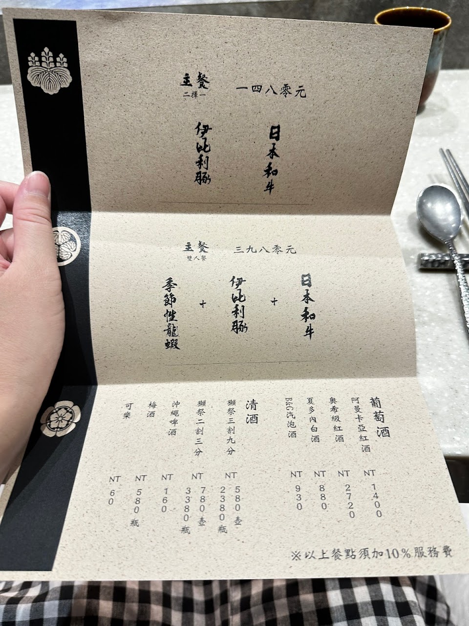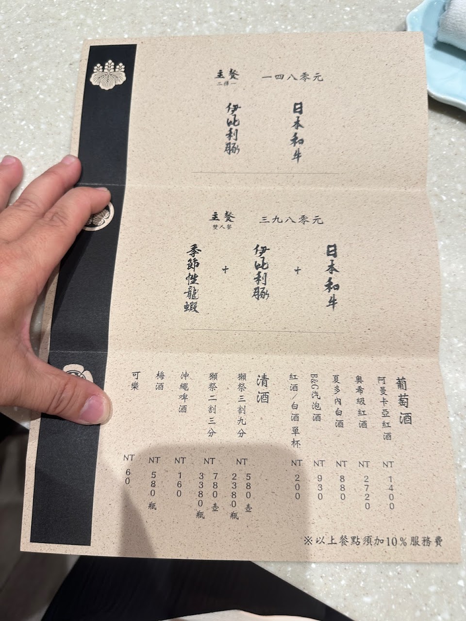飲品:酒單略顯不足,沒有單杯的紅白酒這點希望改進,餐點搭配獺祭的不是全部,要考慮一下適配度。贈送的氣泡飲太甜了,影響品嚐菜品,還有茶水應該要給茶和水兩種。