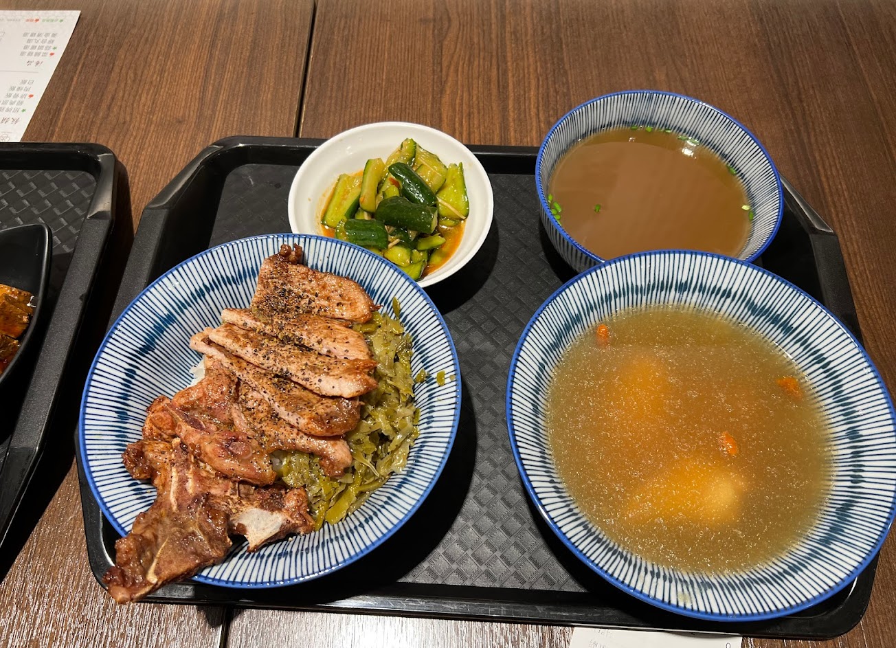但很好吃欸!雞肉飯肉質很嫩不柴!排骨飯的排骨也是很到位!滷蛋豆腐小菜也不馬虎,湯也是有味道的,不是熱開水那種。