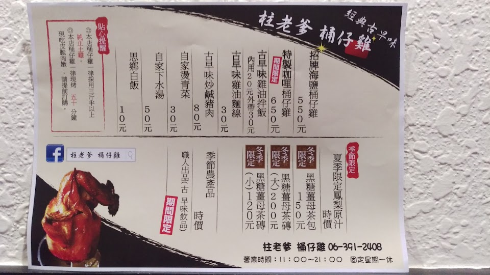 2024最新在地推薦餐廳的菜單_柱老爹 桶仔雞的菜單、圖片