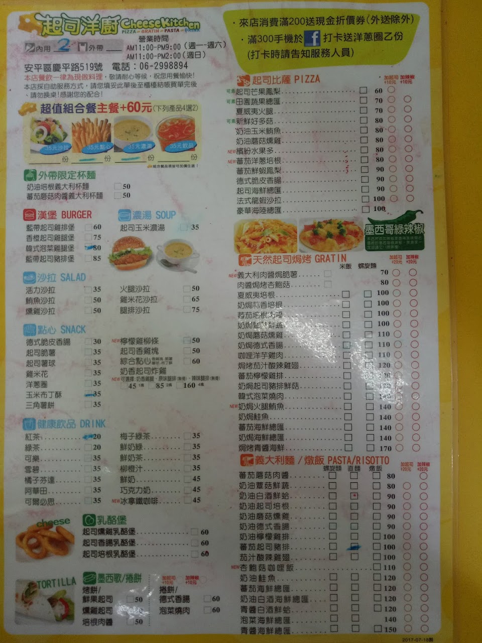2024最新在地推薦餐廳的菜單_起司洋廚 Cheese Kitchen的菜單、圖片