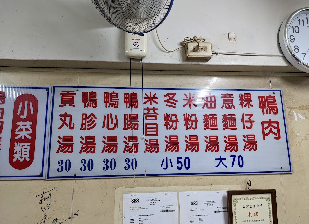 市場內的小店,店家生意很好。麵/冬粉/粄條都會有鴨肉,點湯的較划算,米血偏軟,較不合意,來白河,可以試試。