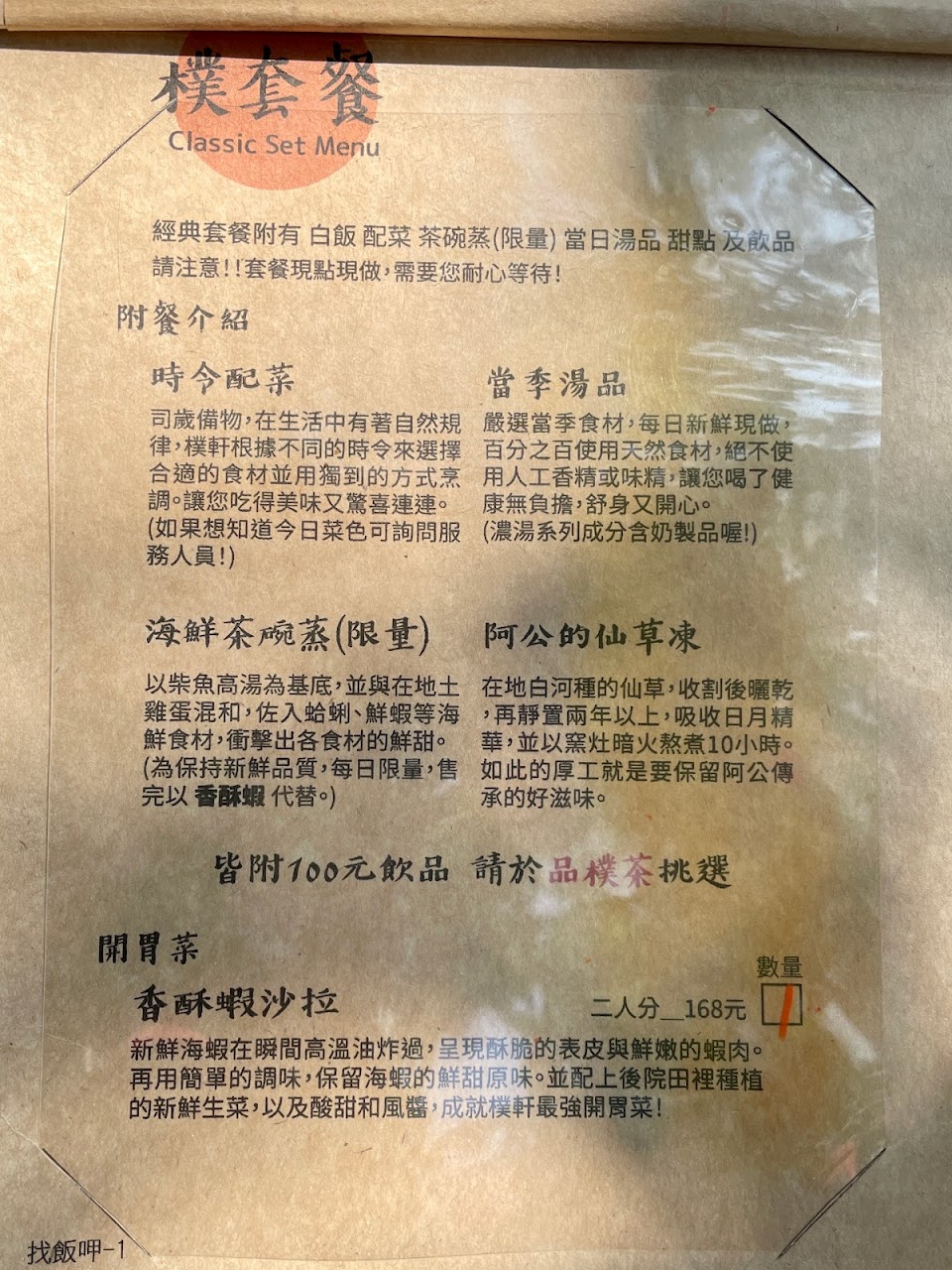 香酥蝦沙拉 阿公的仙草凍 和風壽喜陶板燒