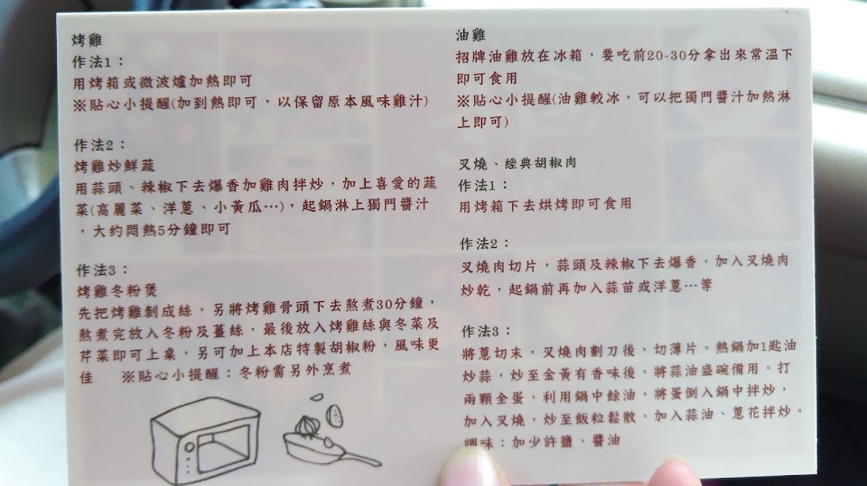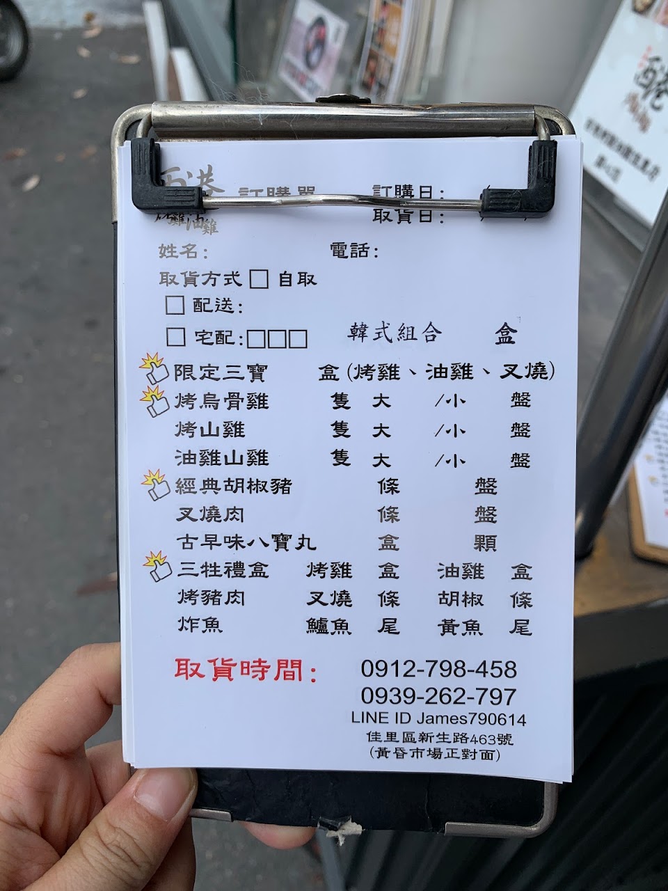 店家1430開賣,3點多油雞、胡椒豬等很多都賣完了。現場持續在排隊購買,因為電話訂購跟現場客購買都只有一位負責接待,所以會花比較久的時間在等待。今天買了烤雞半隻220。烤雞肉質吃起來很嫩不柴,搭配醬料跟胡椒粉,非常的刷嘴,吃膩了還可以搭配蘿蔔泡菜吃,非常解膩。如果要買建議電話先預訂,現場排隊除了花費時間還有可能買不到想吃的餐點喔